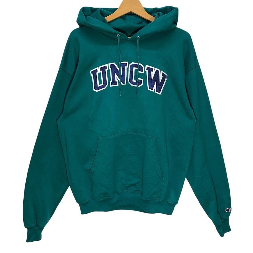 商品名:Champion チャンピオン ノースカロライナ大学 ウィルミントン校 カレッジ刺繡ロゴ パーカー フーディー プルオーバー 長袖 Mexico製 Lサイズ グリーン