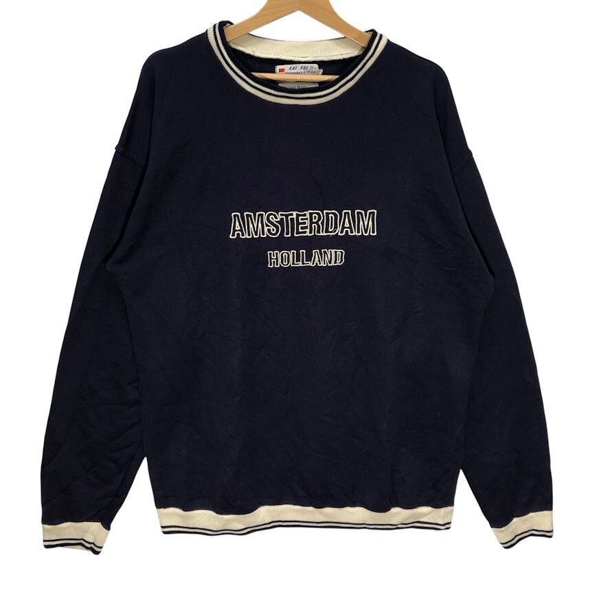 商品名:90's vintage 90年代ヴィンテージ KAF KAF オランダブランド ユーロ古着 スウェット トレーナー フロント刺繡 オーバーサイズ ビッグシルエット Holland製 ネイビー