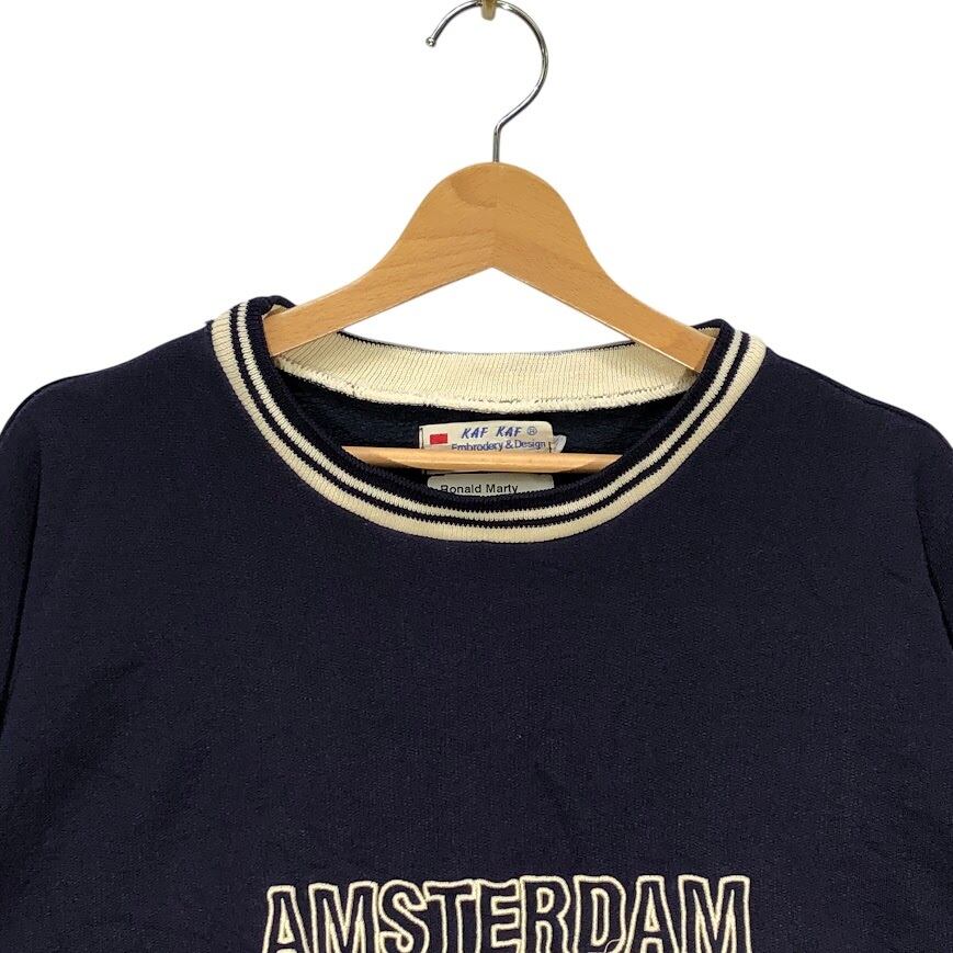 90's vintage 90年代ヴィンテージ KAF KAF オランダブランド ユーロ古着 スウェット トレーナー フロント刺繡 オーバーサイズ ビッグシルエット Holland製 ネイビー