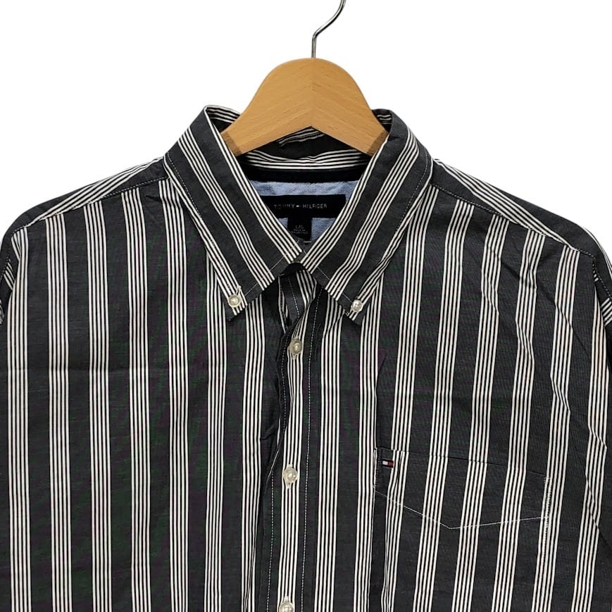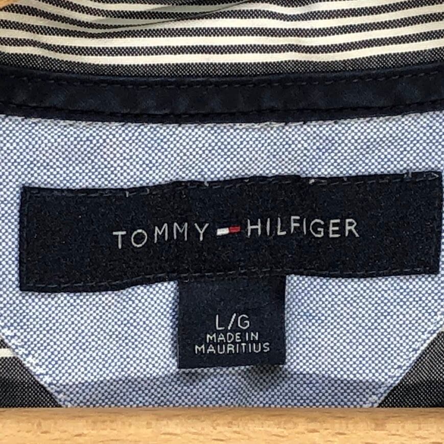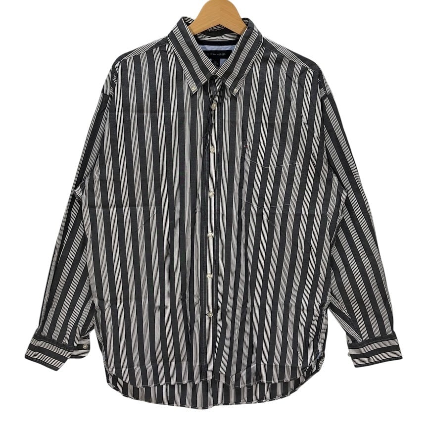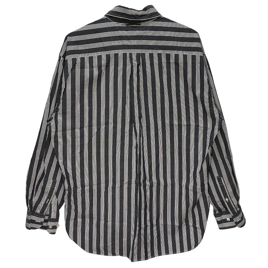 TOMMY HILFIGER トミーヒルフィガー 長袖シャツ ストライプ柄 ワンポイント刺繡 オーバーサイズ MAURITIUS製 Lサイズ グレー ホワイト