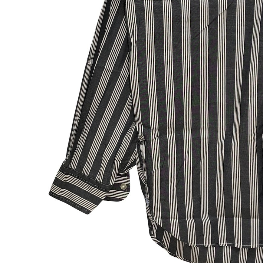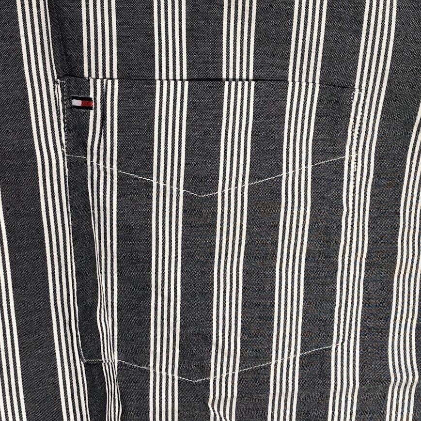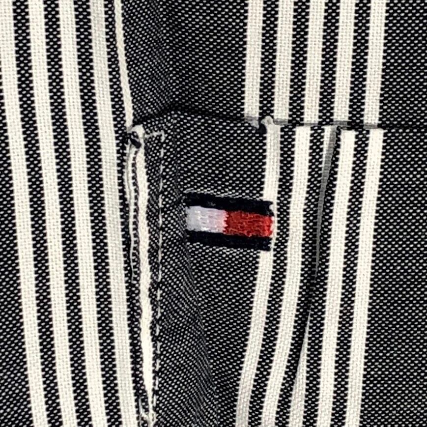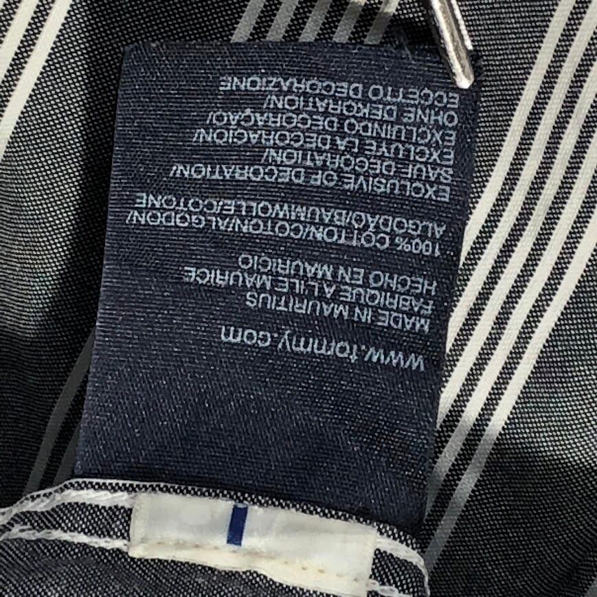 TOMMY HILFIGER トミーヒルフィガー 長袖シャツ ストライプ柄 ワンポイント刺繡 オーバーサイズ MAURITIUS製 Lサイズ グレー ホワイト