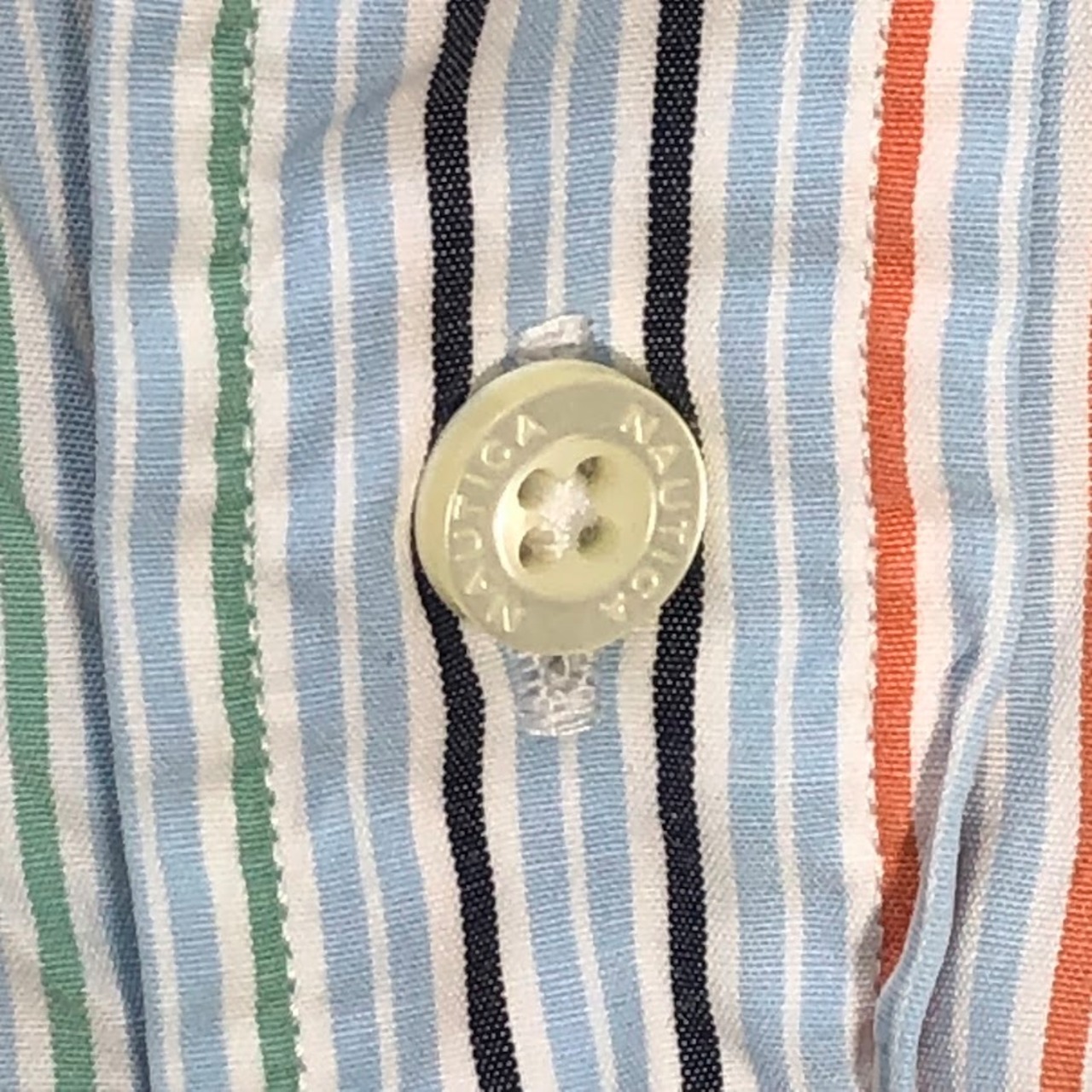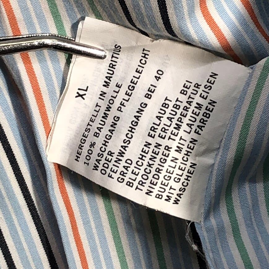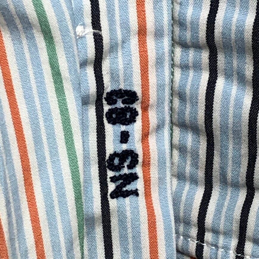 商品名:NAUTICA ノーティカ 80's TWO-PLY COTTON 胸ポケット 長袖シャツ ストライプ柄 ワンポイント刺繡 オーバーサイズ ビッグシルエット MAURITIUS製 XLサイズ ライトブルー マルチカラー