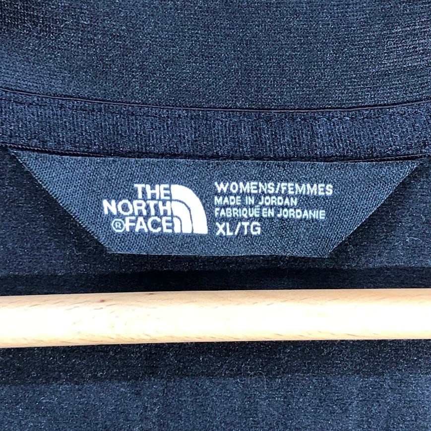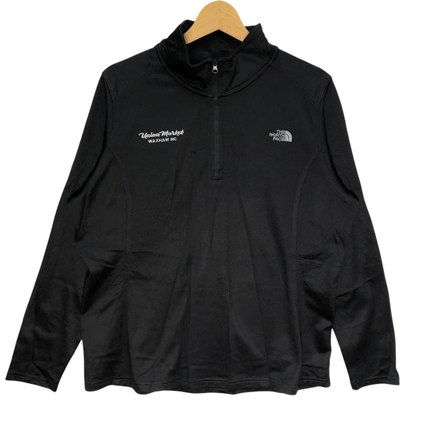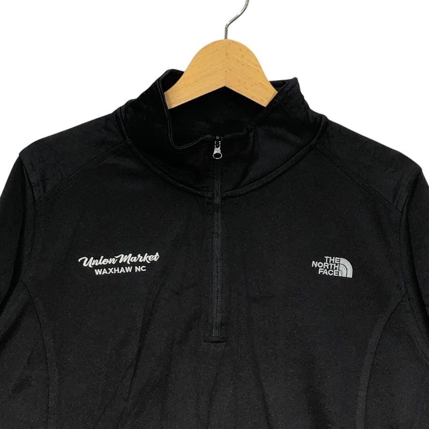 THE NORTH FACE WOMENS ザノースフェイスウーマンズ トラックジャケット プルオーバー ハーフジップ 企業ロゴ刺繡 フロント刺繍 ワンポイントロゴ刺繍 JORDAN製 WOMENS XLサイズ ブラック