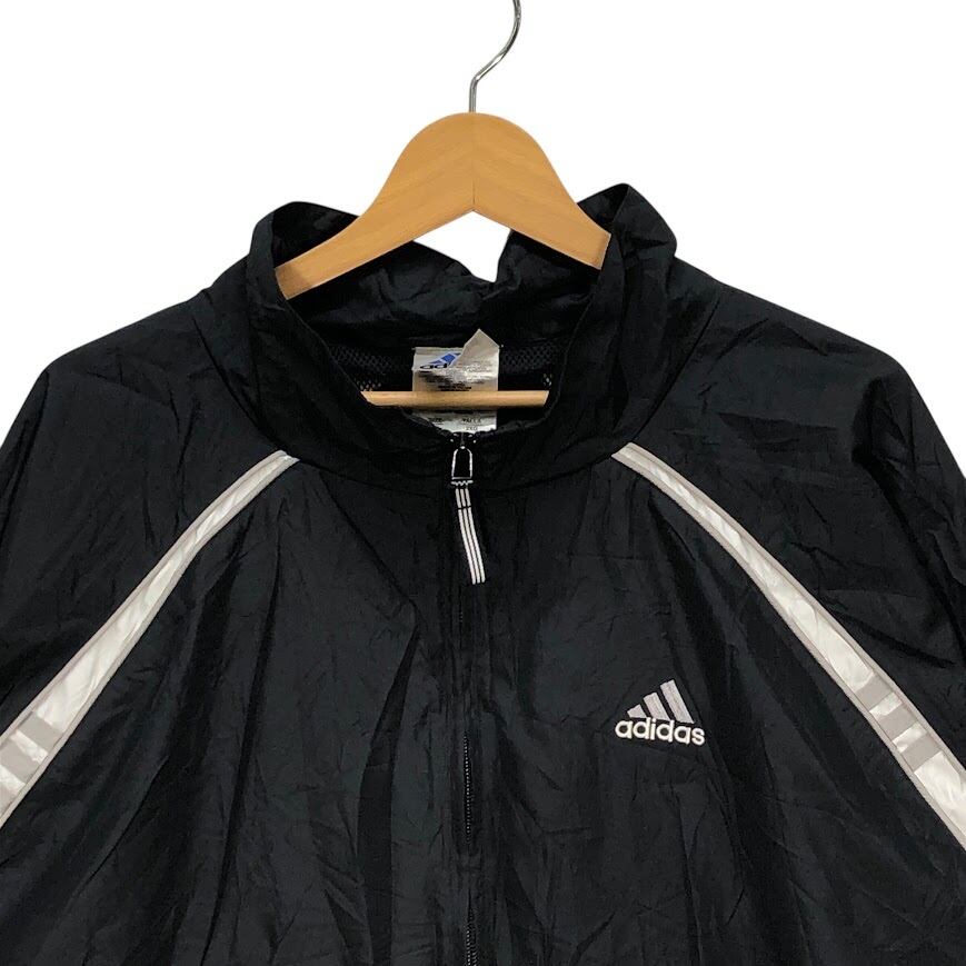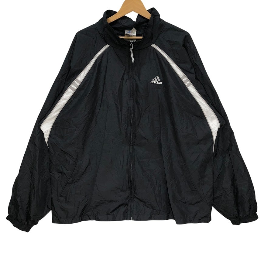 90's vintage 90年代ヴィンテージ adidas アディダス ナイロンジャケット ジャージ スリーライン トレーニング ワンポイントロゴ刺繡 タイ製 2XGサイズ ブラック
