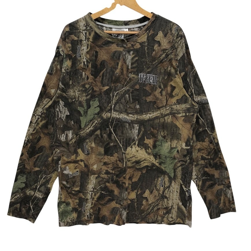 商品名:TOTALFISHIN GEAR TFGEAR リアルツリー 総柄 迷彩 長袖 ロンT ワンポイント刺繡 オーバーサイズ ビッグシルエット Taiwan製 XXLサイズ カーキ