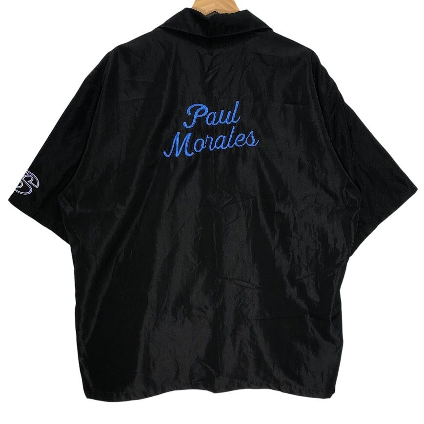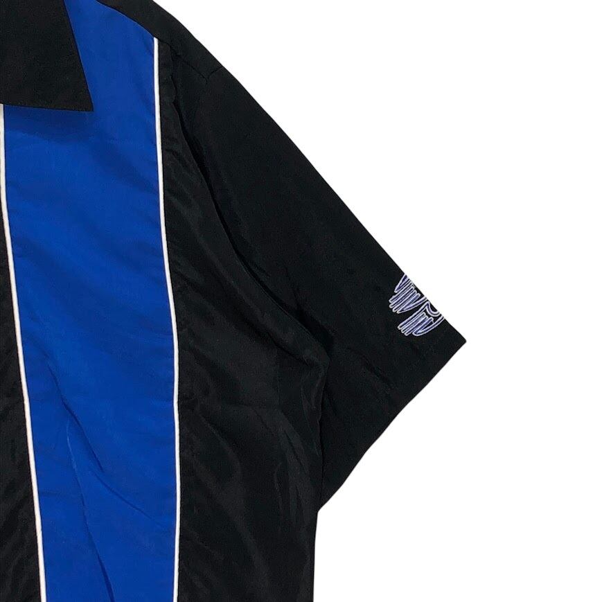 DW GEAR ワークシャツ レーシングシャツ Paul Morales ユニフォーム チーム ポリエステルシャツ 半袖シャツ ボタンダウン フロント刺繡 バック刺繍 企業ロゴ刺繍 オーバーサイズ ビッグシルエット ブラック ブルー