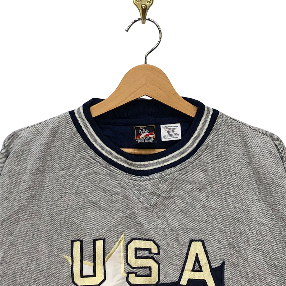 商品名:90's vintage 90年代ヴィンテージ J.C PENNY ジェーシーペニー Olympics オリンピック USAチーム仕様 スウェット トレーナー フロント刺繡 China製 XLサイズ グレー
