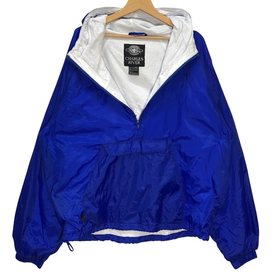 商品名:CHARLES RIVER アノラックパーカー ハーフジップ プルオーバー ジャケット LYNX アウター フロント バック刺繡 オーバーサイズ ビッグシルエット ドローコード アラブ製 XLサイズ ブルー
