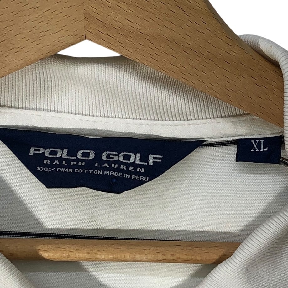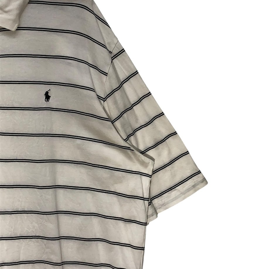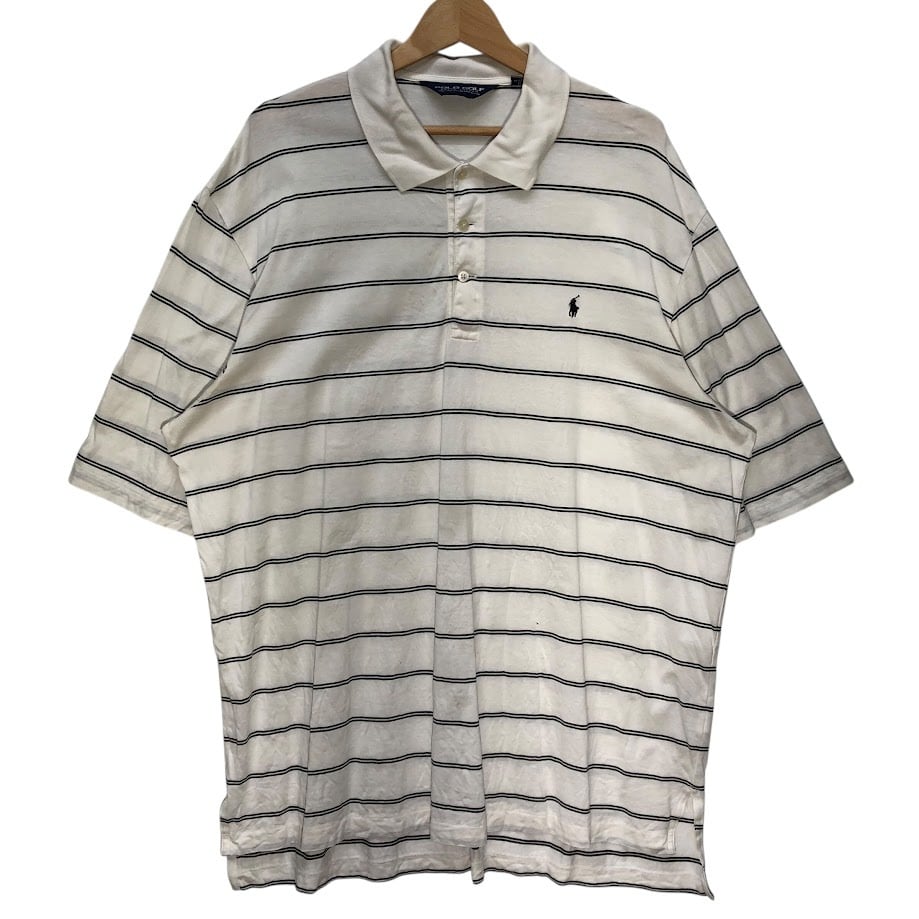 90's vintage 90年代ヴィンテージ POLO GOLF RALPH LAUREN ポロゴルフラルフローレン ボーダー 半袖 ポロシャツ ポニー刺繍 ワンポイント刺繡 オーバーサイズ ビッグシルエット PERU製 XLサイズ ホワイト ブラック