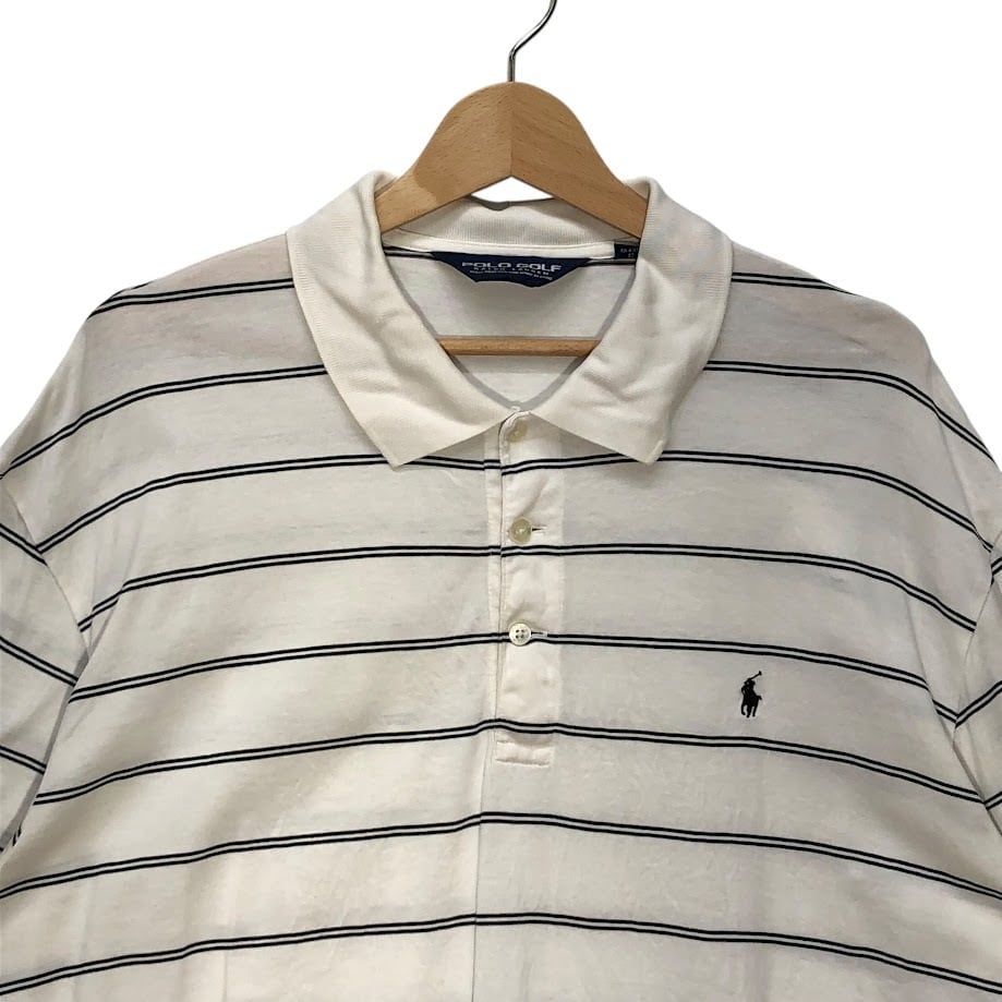 商品名:90's vintage 90年代ヴィンテージ POLO GOLF RALPH LAUREN ポロゴルフラルフローレン ボーダー 半袖 ポロシャツ ポニー刺繍 ワンポイント刺繡 オーバーサイズ ビッグシルエット PERU製 XLサイズ ホワイト ブラック
