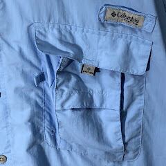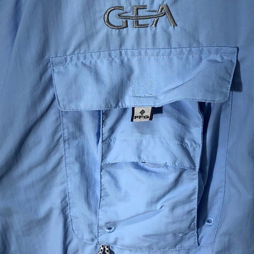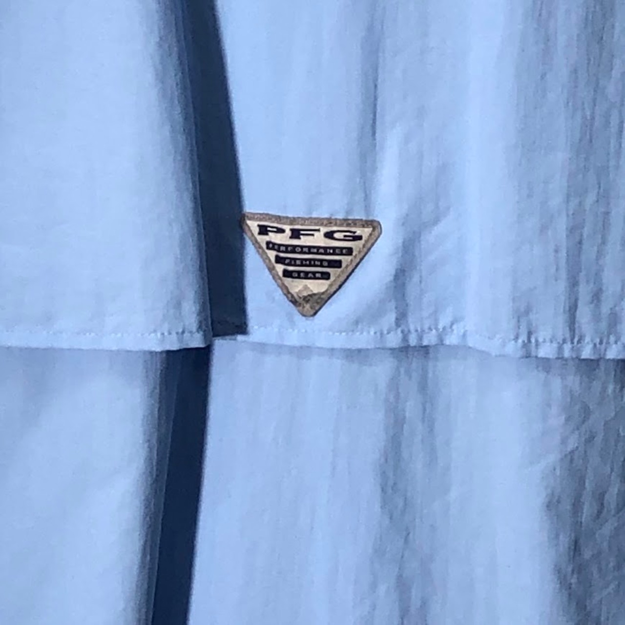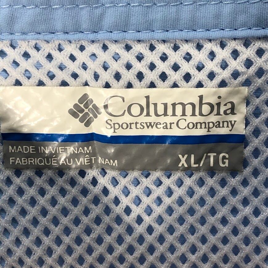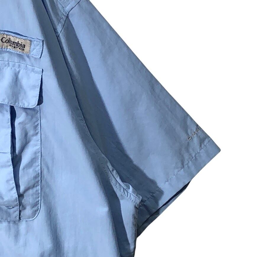 Columbia/コロンビア PFG フィッシングシャツ アウトドア 企業ロゴ刺繡 半袖シャツ ボタンダウン オーバーサイズ ベトナム製 XLサイズ スカイブルー