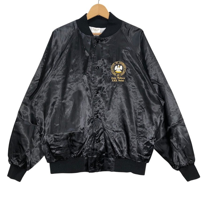 90's vintage 90年代ヴィンテージ AUBURN SPORTS WEAR アーバンスポーツウェア スタジャン ナイロンジャケット ライトアウター 企業ロゴ刺繡 オーバーサイズ ビッグシルエット USA製 XLサイズ ブラック