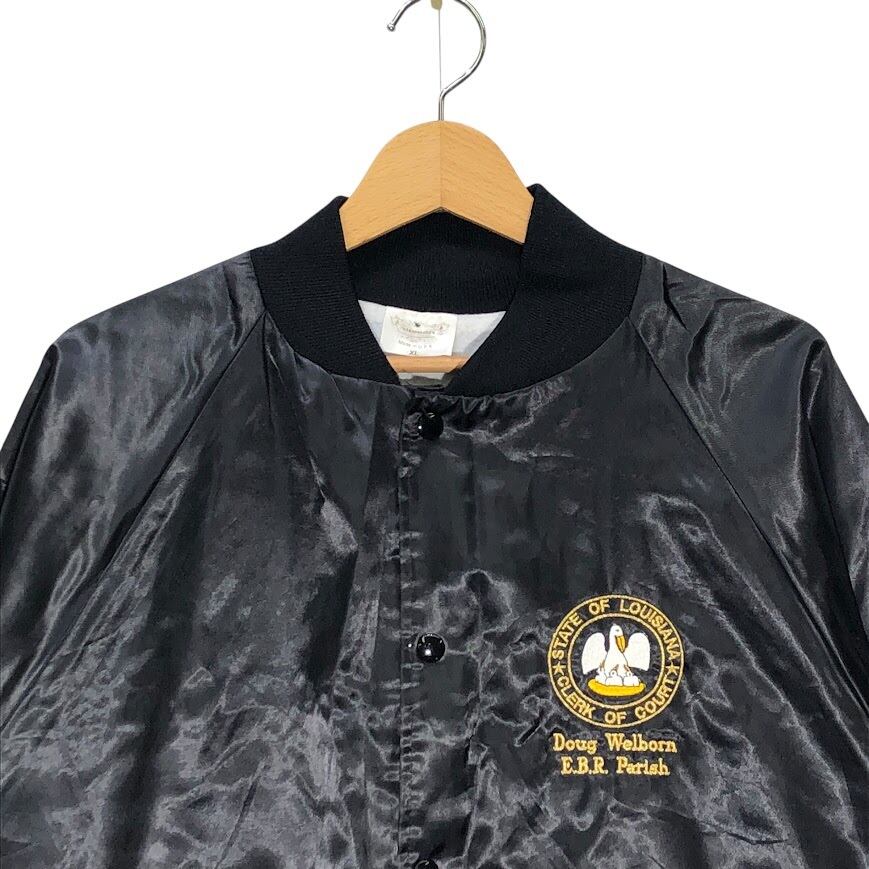 商品名:90's vintage 90年代ヴィンテージ AUBURN SPORTS WEAR アーバンスポーツウェア スタジャン ナイロンジャケット ライトアウター 企業ロゴ刺繡 オーバーサイズ ビッグシルエット USA製 XLサイズ ブラック