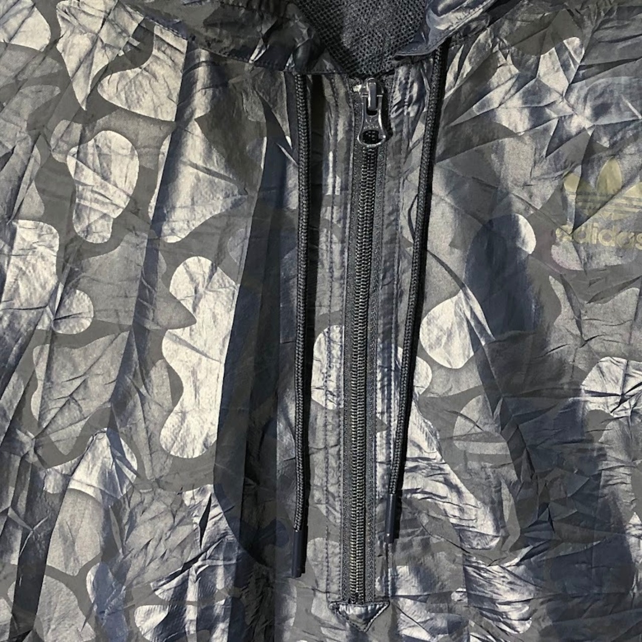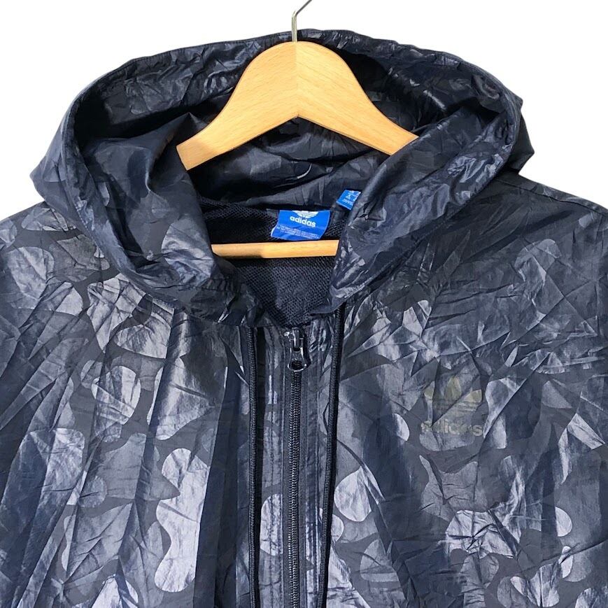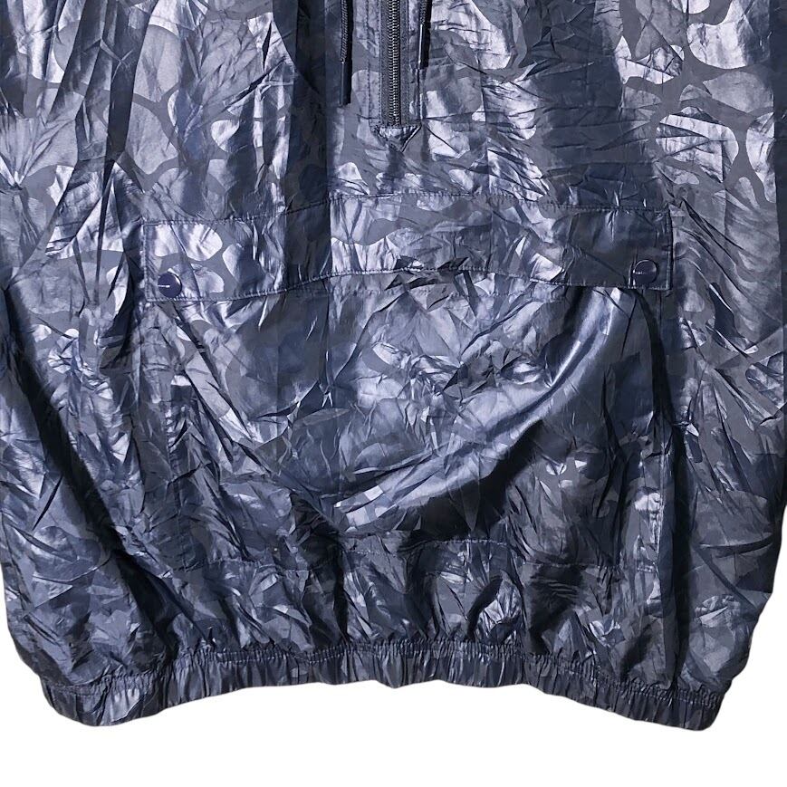 adidas /アディダス ナイロンプルオーバ パーカー ハーフジップ 総柄 フード ライトアウター 長袖 ワンポイントプリント オーバーサイズ ビッグシルエット Vietnam製 Mサイズ ネイビー