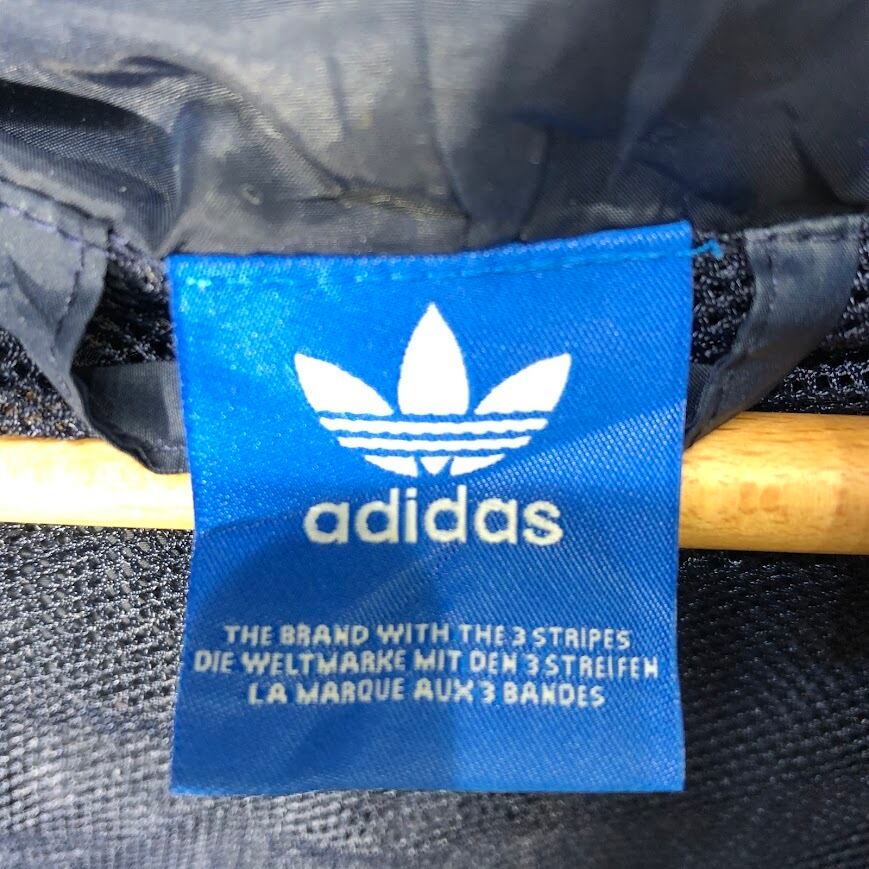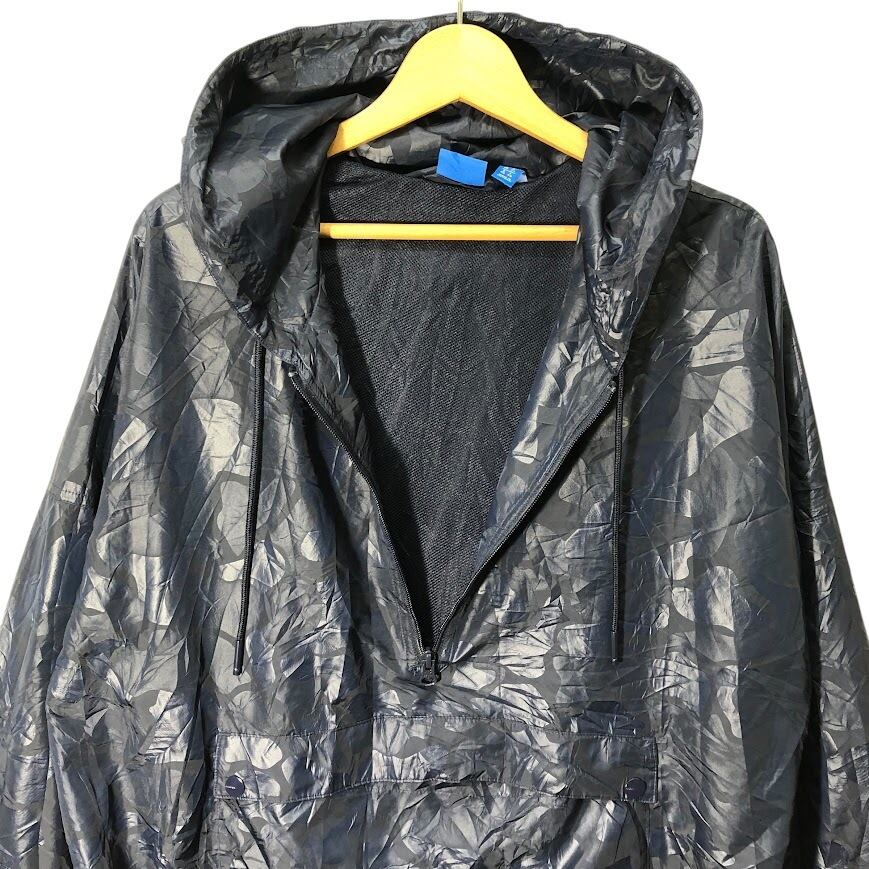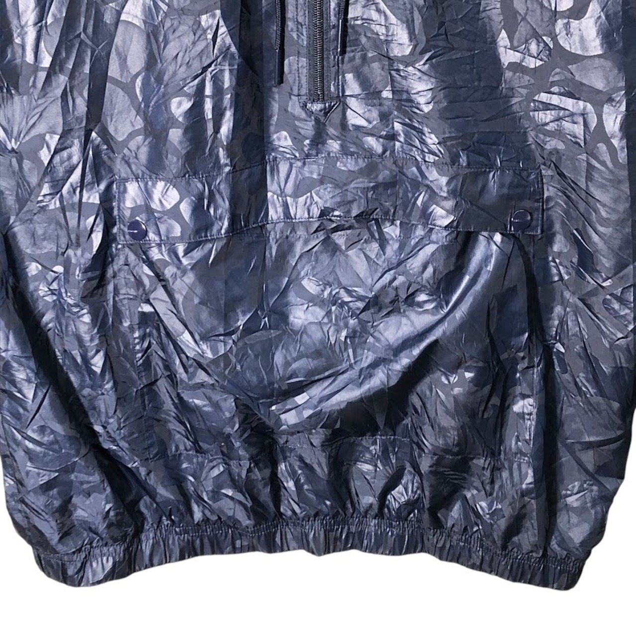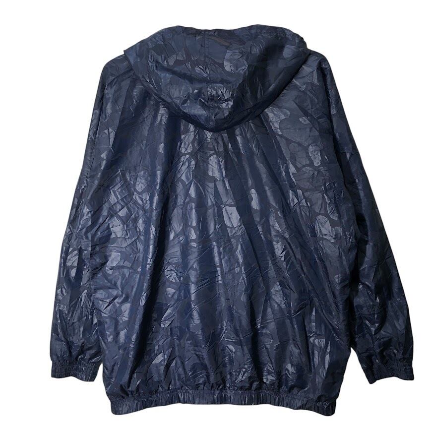 商品名:adidas /アディダス ナイロンプルオーバ パーカー ハーフジップ 総柄 フード ライトアウター 長袖 ワンポイントプリント オーバーサイズ ビッグシルエット Vietnam製 Mサイズ ネイビー