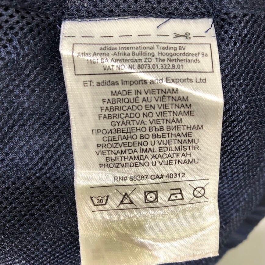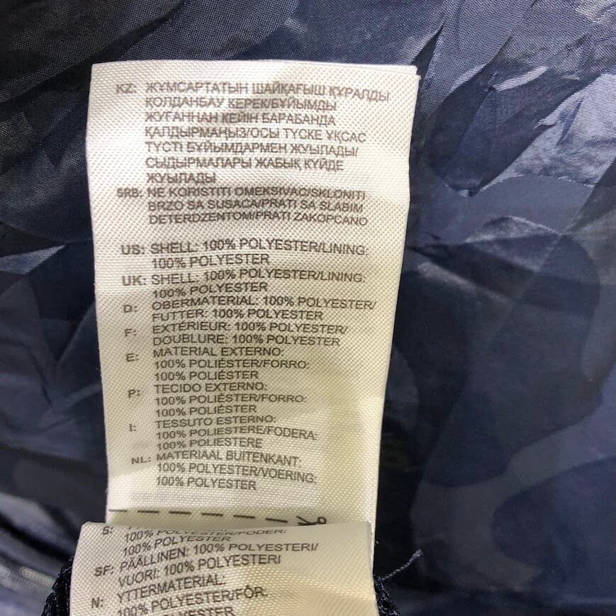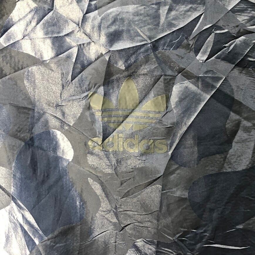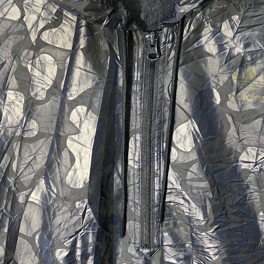商品名:adidas /アディダス ナイロンプルオーバ パーカー ハーフジップ 総柄 フード ライトアウター 長袖 ワンポイントプリント オーバーサイズ ビッグシルエット Vietnam製 Mサイズ ネイビー