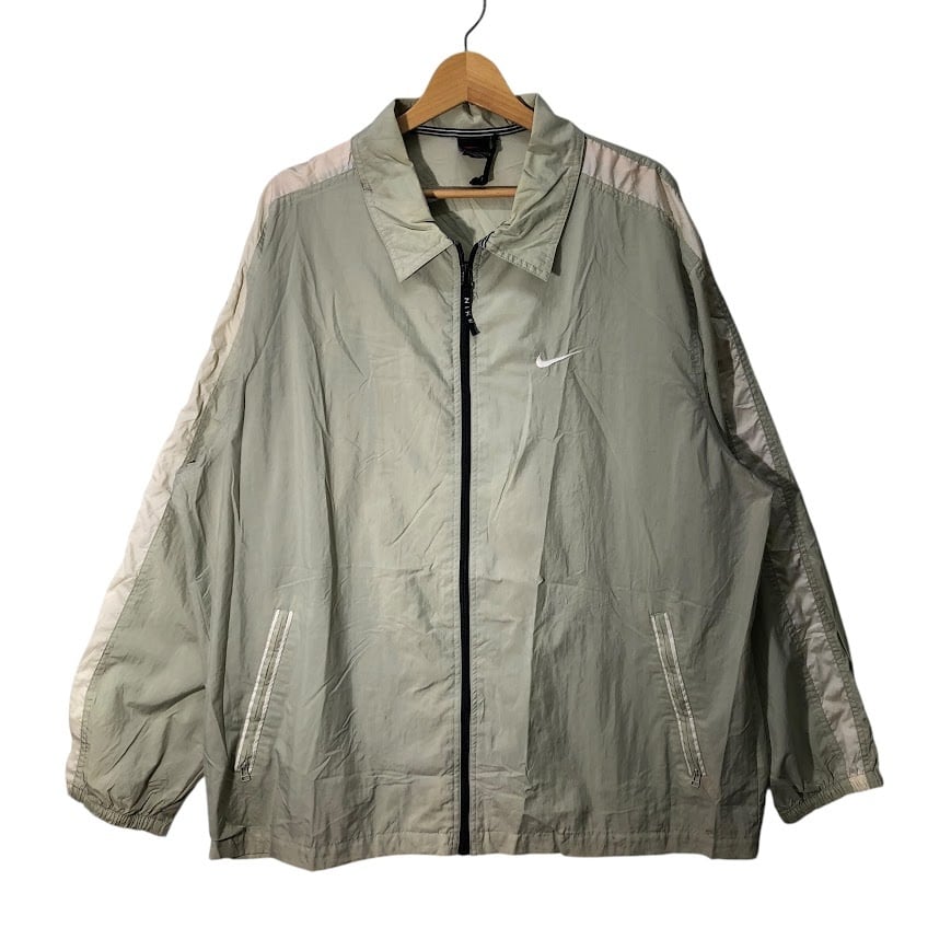 商品名:NIKE/ナイキ 90年代/90's ヴィンテージ 黒タグ ナイロンJK フルジップ ジップアップ ライトアウター ナイロンジャケット 長袖 ワンポイント刺繡 オーバーサイズ Philippines製 Lサイズ ベージュ