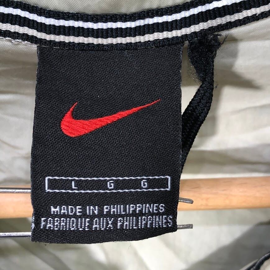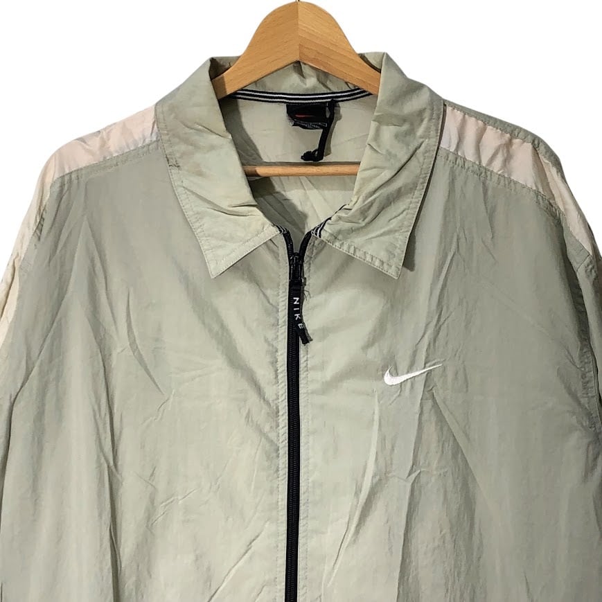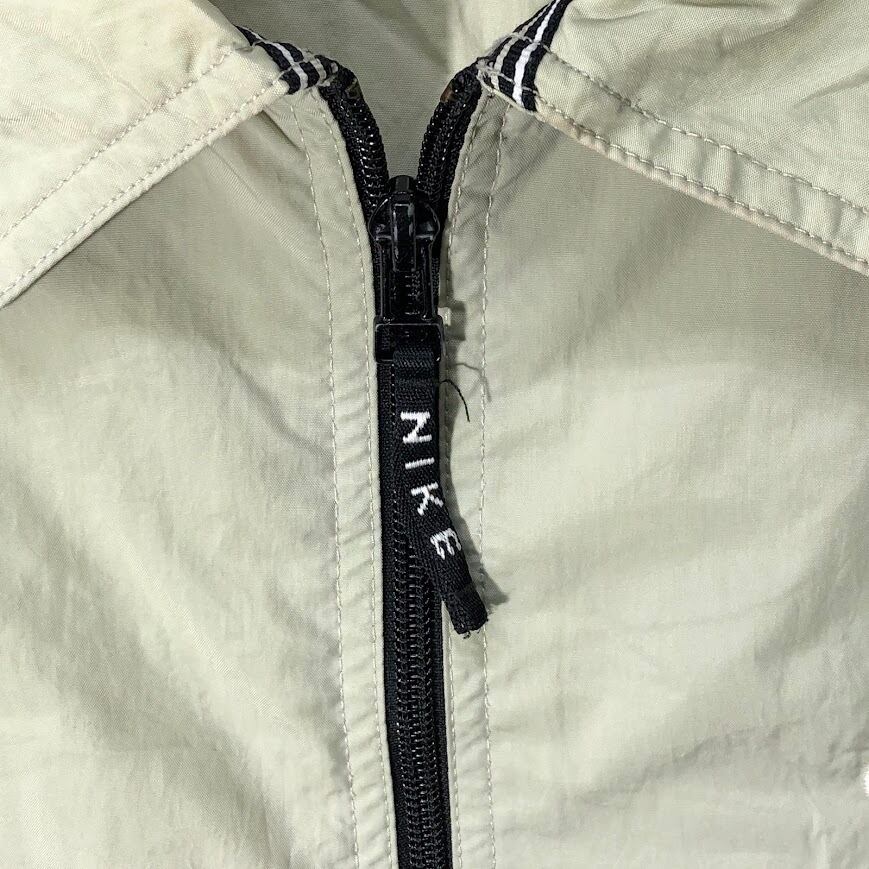 NIKE/ナイキ 90年代/90's ヴィンテージ 黒タグ ナイロンJK フルジップ ジップアップ ライトアウター ナイロンジャケット 長袖 ワンポイント刺繡 オーバーサイズ Philippines製 Lサイズ ベージュ
