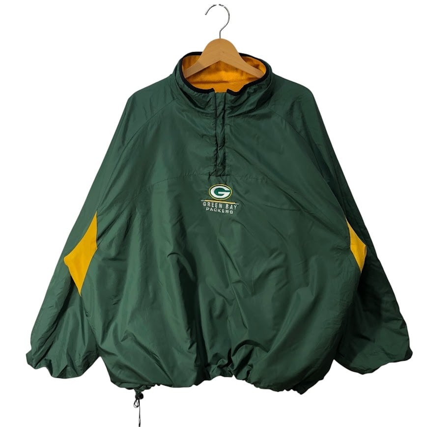 NFL エヌエフエル リバーシブルジャケット ナイロンプルオーバージャケット フリース 2WAY 袖ジップ グリーンベイパッカーズ アウター ドローコード ワンポイント刺繍 オーバーサイズ ビッグシルエット グリーン イエロー