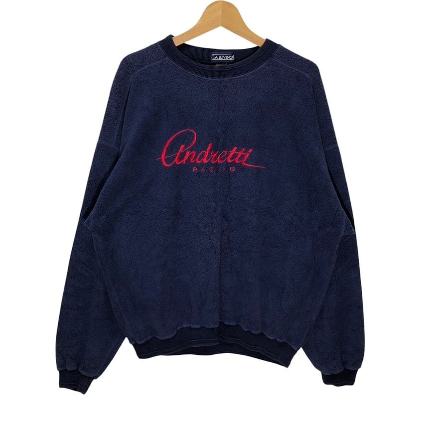 LA LOVING モータースポーツ レーシングチーム Andretti フリース クルーネック スウェット トレーナー フロント刺繍 オーバーサイズ ビッグシルエット Honduras製 X-LARGEサイズ ネイビー