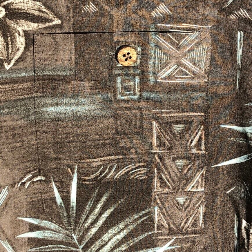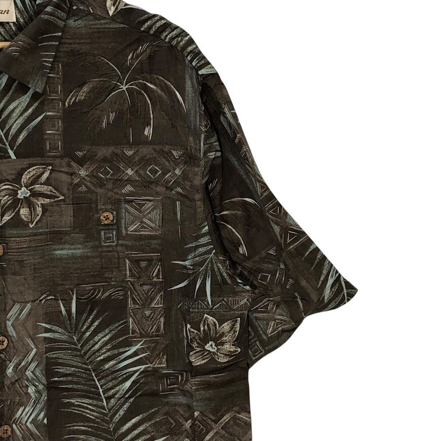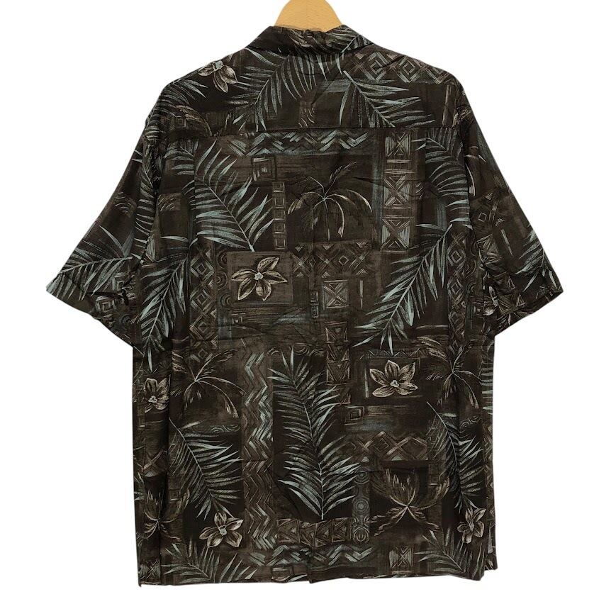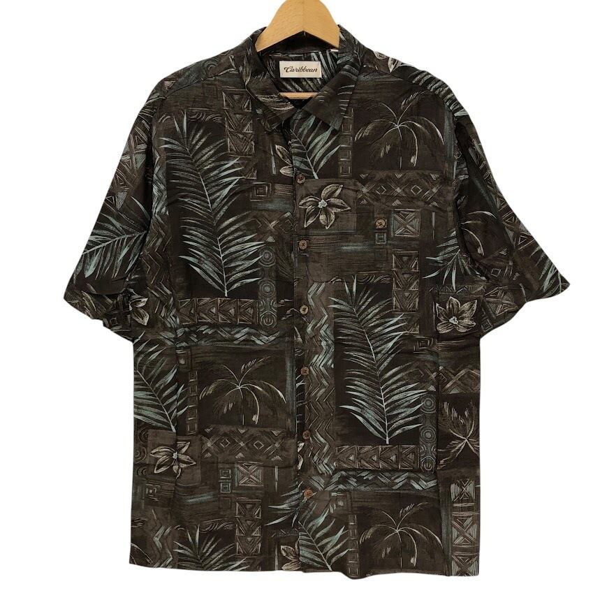 商品名:Caribbean アロハシャツ レーヨンシャツ ヤシの木 ハイビスカス 半袖シャツ ボタンダウン オーバーサイズ ビッグシルエット EL SALVADOR製 Mサイズ ブラウン