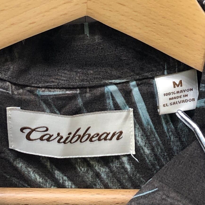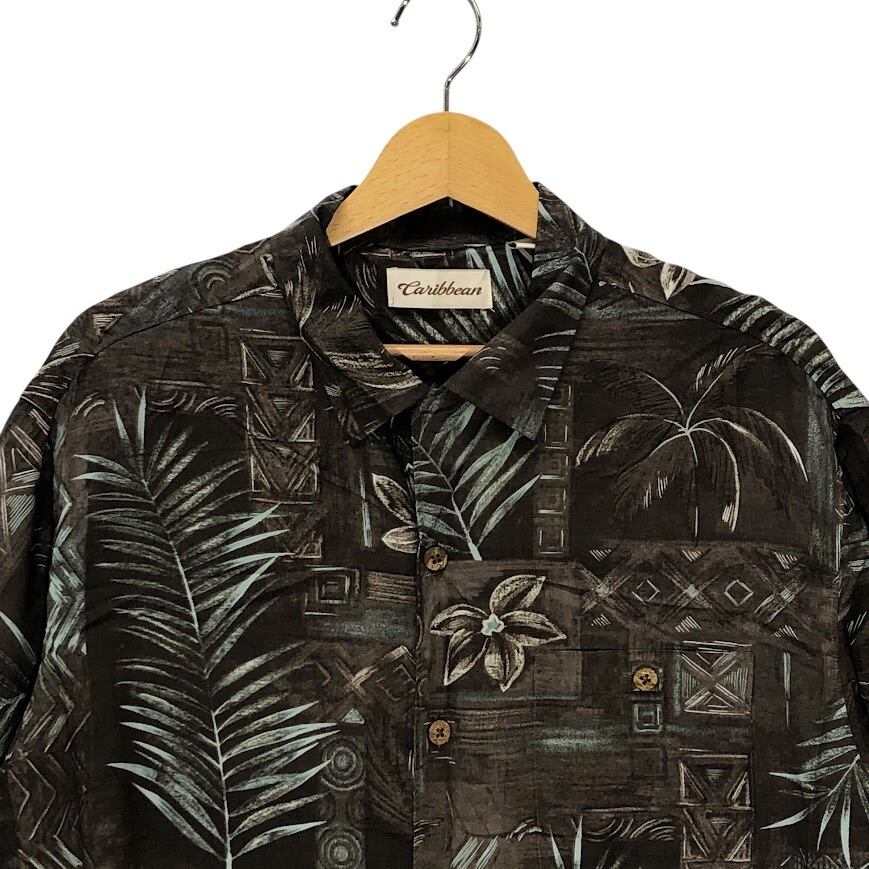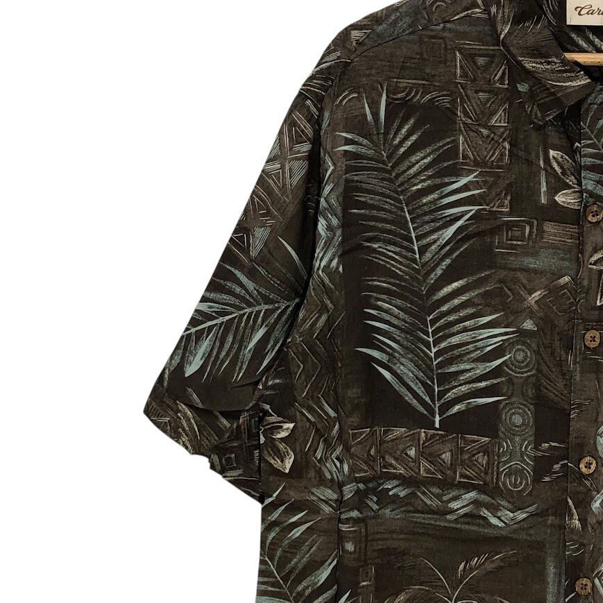 Caribbean アロハシャツ レーヨンシャツ ヤシの木 ハイビスカス 半袖シャツ ボタンダウン オーバーサイズ ビッグシルエット EL SALVADOR製 Mサイズ ブラウン