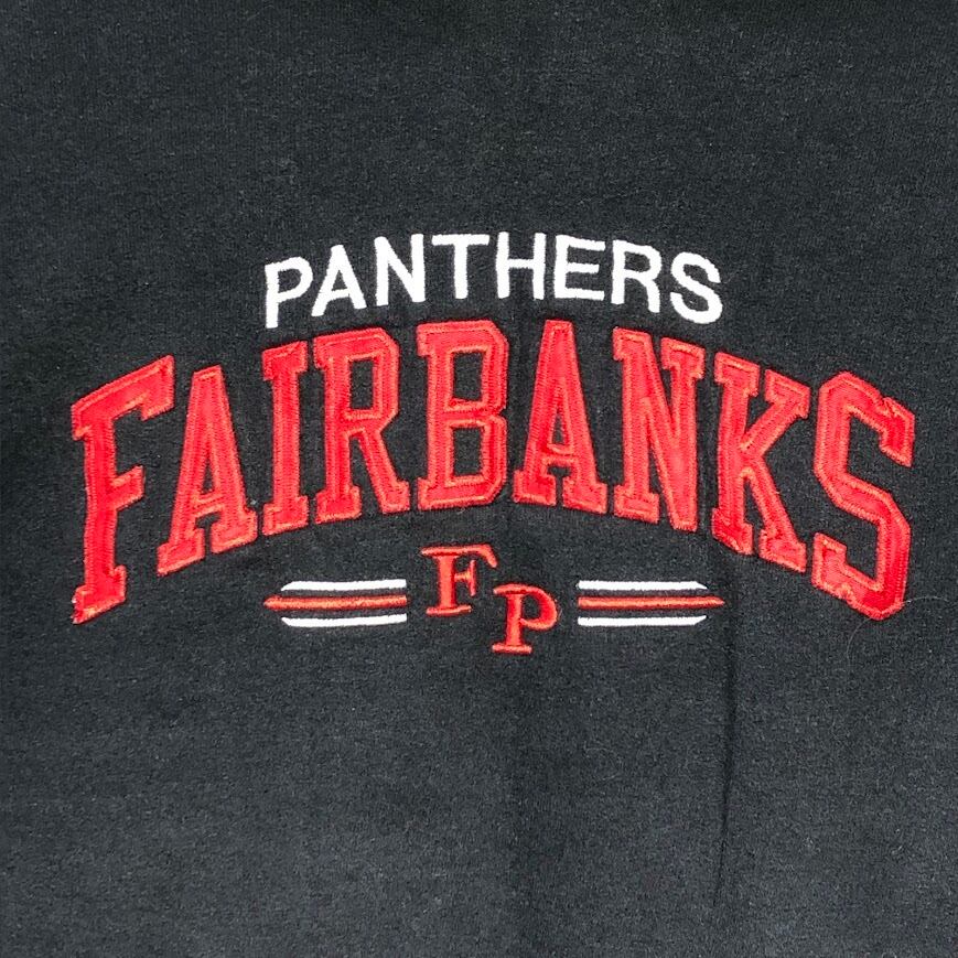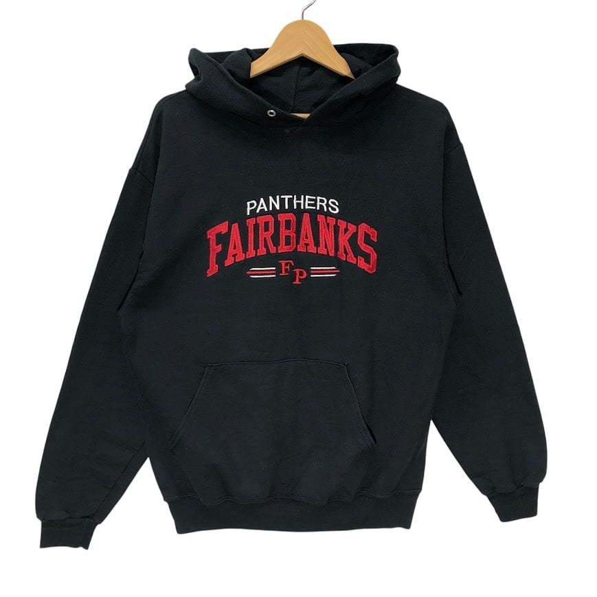 90~00's vintage 90~00年代ヴィンテージ JERZEES ジャージーズ フェアバンクス パンサーズ チーム カレッジロゴ刺繡 パーカー フーディー フロント刺繡 ドミニカ製 Mサイズ ブラック