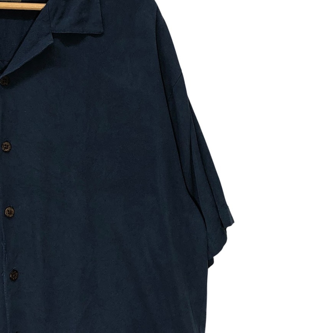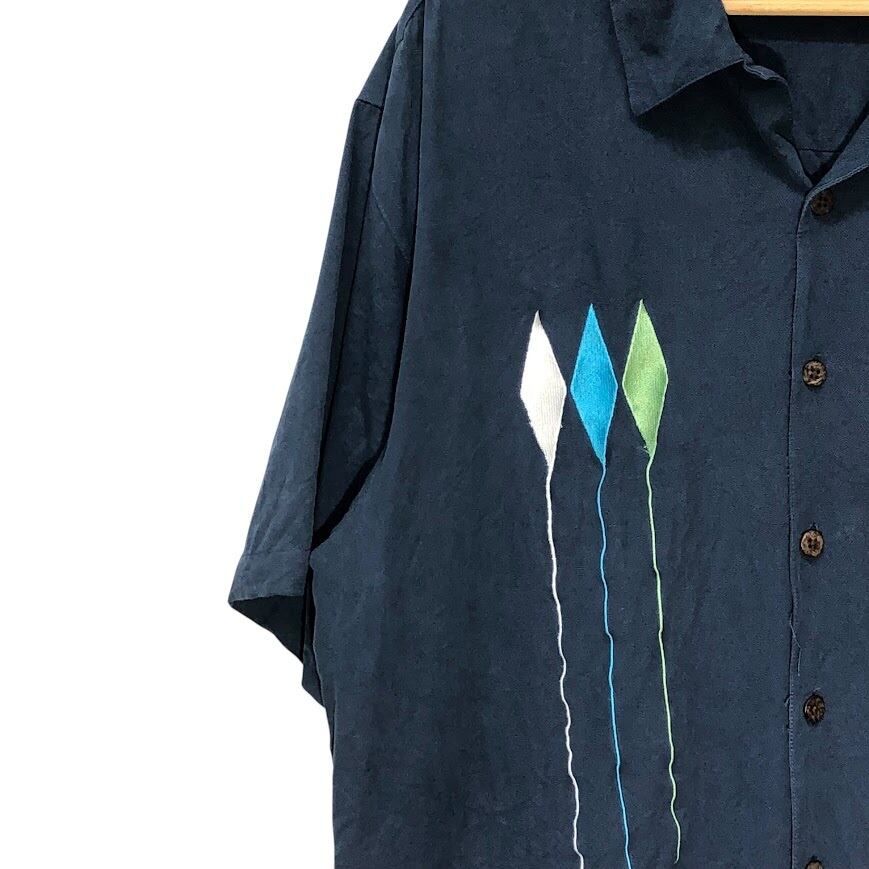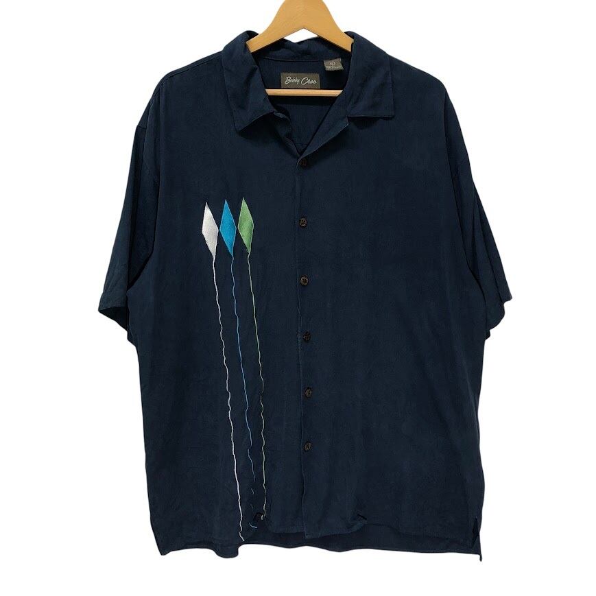商品名:Bobby Chan オープンカラーシャツ シルクシャツ 半袖シャツ フロント刺繍 China製 Lサイズ ネイビー