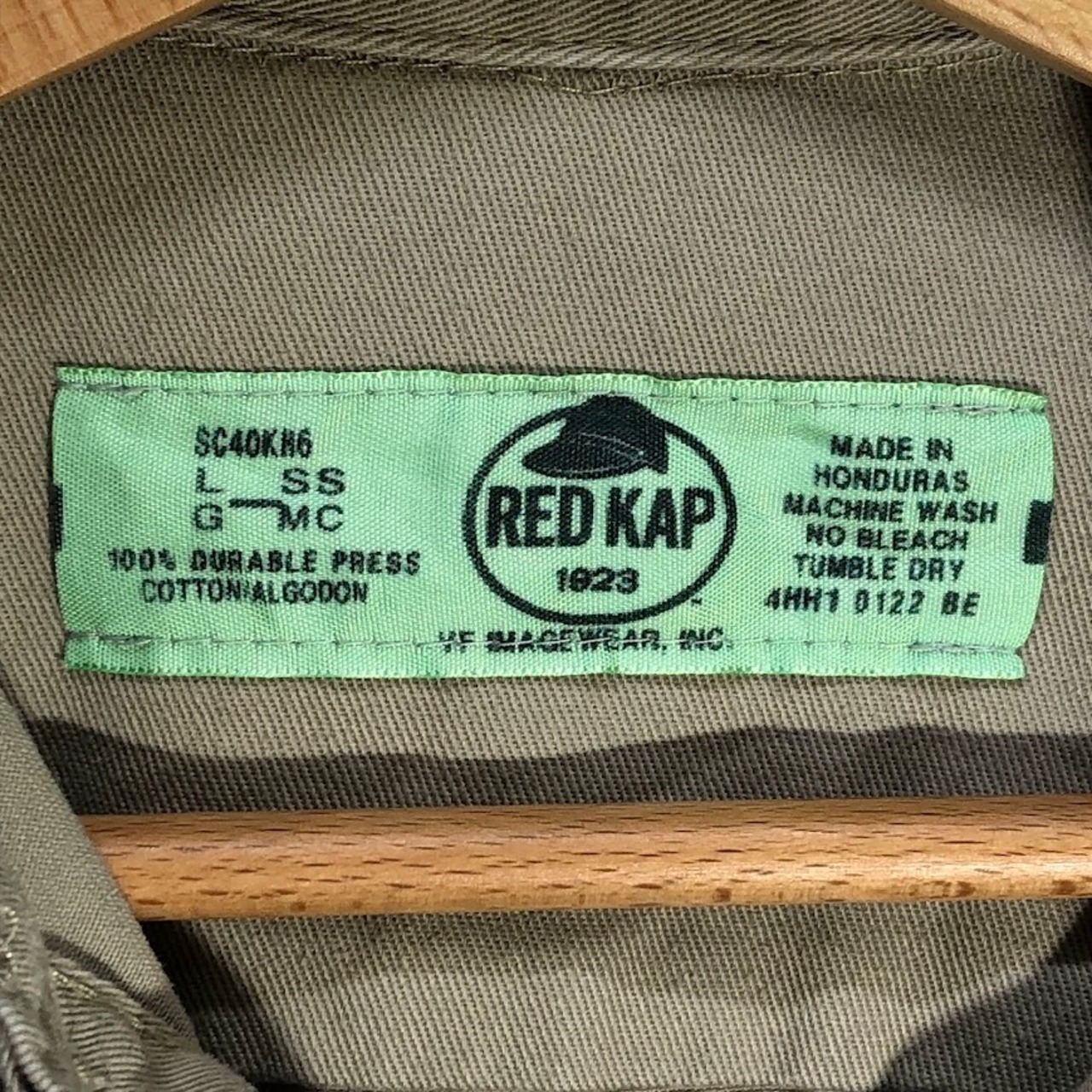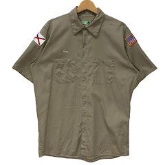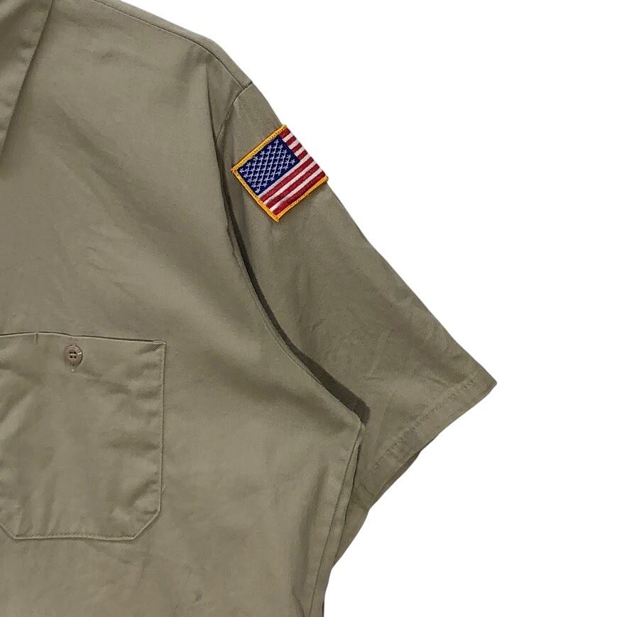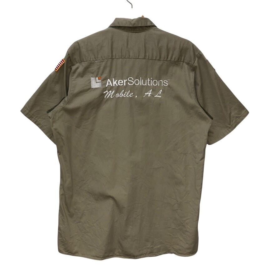 RED KAP レッドキャップ ワークシャツ 国旗ワッペン Aker Solutions 半袖シャツ ボタンダウン バック刺繍 企業ロゴ刺繡 ワンポイント刺繡 オーバーサイズ ビッグシルエット Honduras製 Lサイズ ベージュ