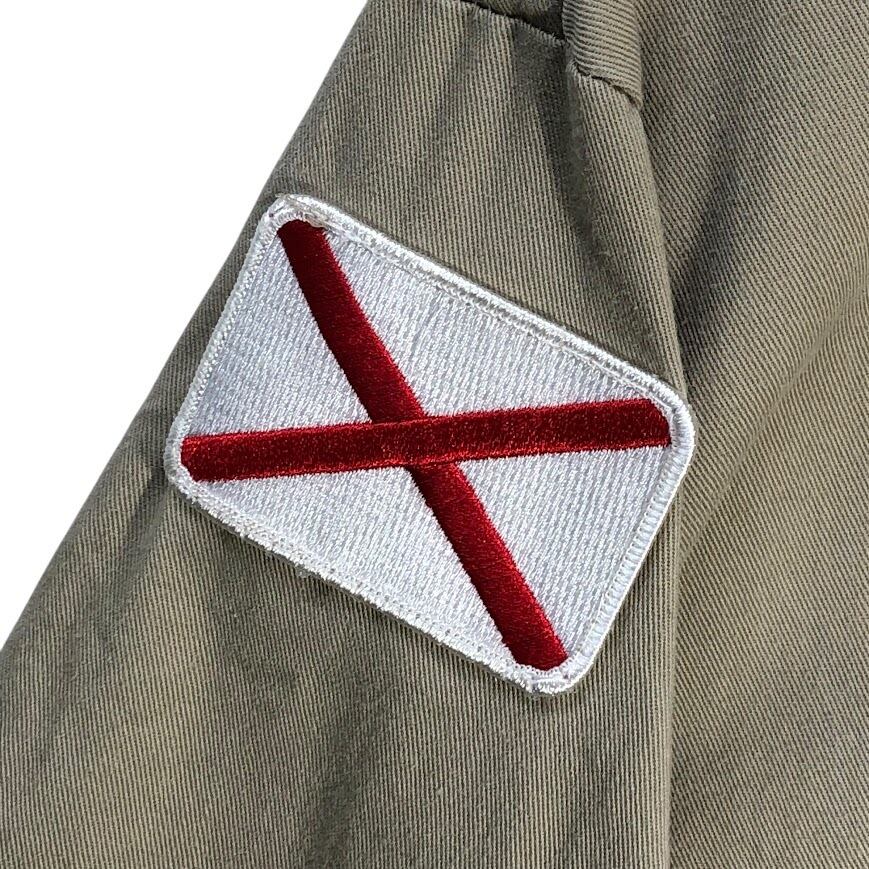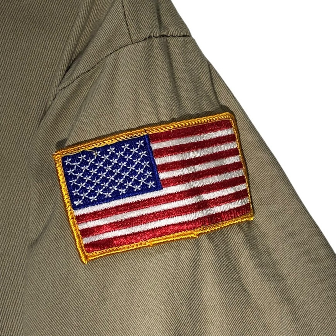 商品名:RED KAP レッドキャップ ワークシャツ 国旗ワッペン Aker Solutions 半袖シャツ ボタンダウン バック刺繍 企業ロゴ刺繡 ワンポイント刺繡 オーバーサイズ ビッグシルエット Honduras製 Lサイズ ベージュ