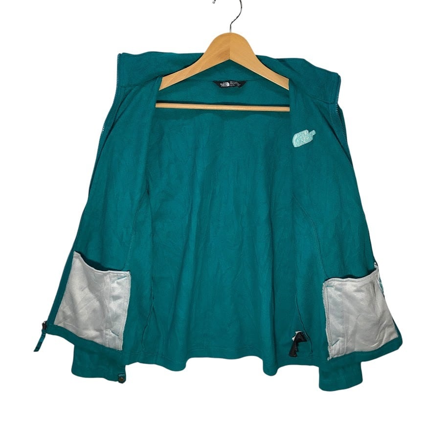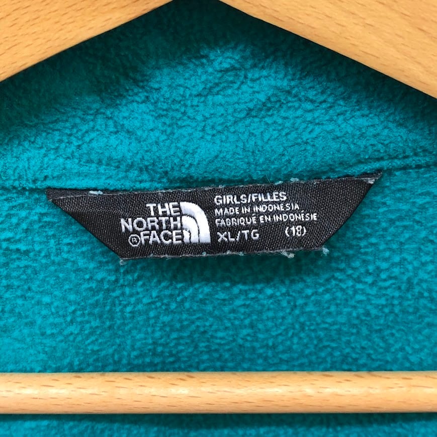 THE NORTH FACE ザ ノースフェイス フリースジャケット レディース ガールズ ライトアウター ワンポイント刺繍 インドネシア製 Girls XLサイズ ターコイズ エメラルドグリーン