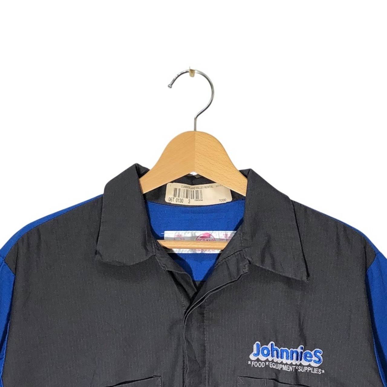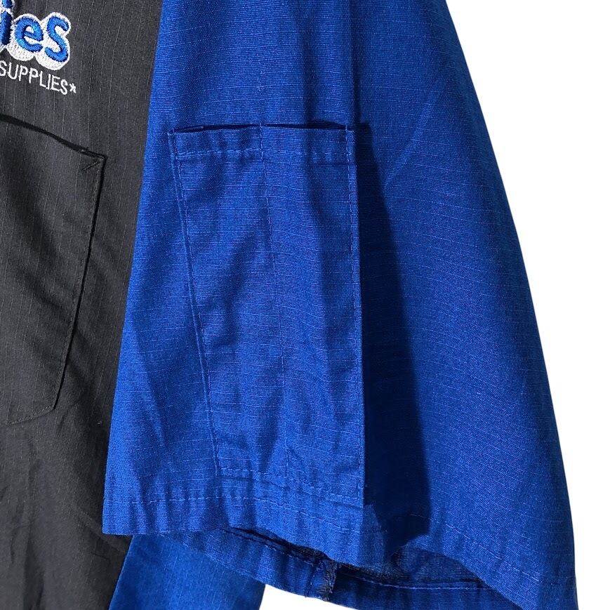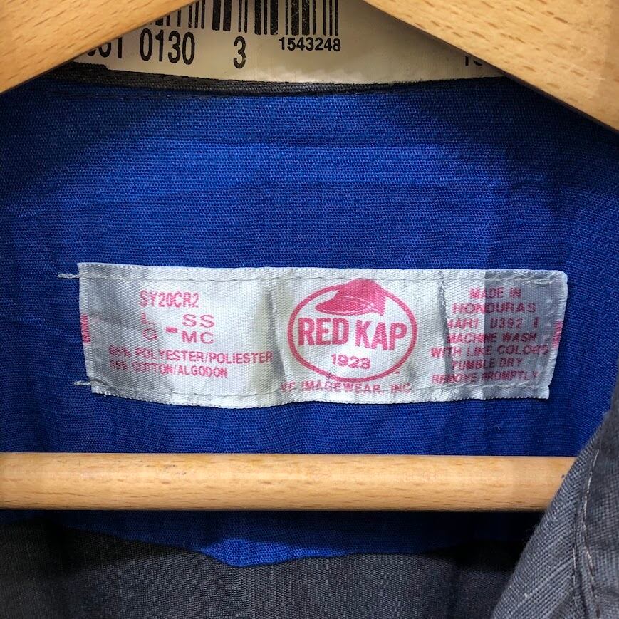 商品名:ヴィンテージ RED KAP レッドキャップ ワークシャツ Johnnies オープンカラーシャツ 開襟シャツ バイカラー 半袖 シャツ ボタンダウン 企業ロゴ刺繡 オーバーサイズ ビッグシルエット ホンジュラス製 L-SSサイズ グレー ブルー