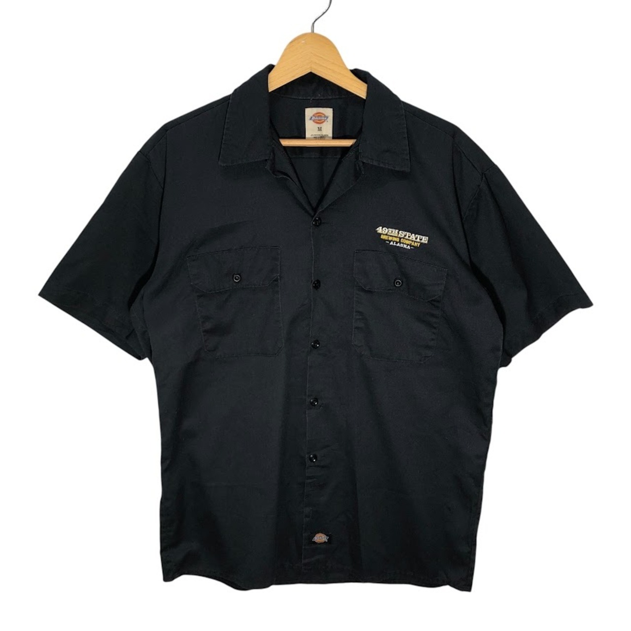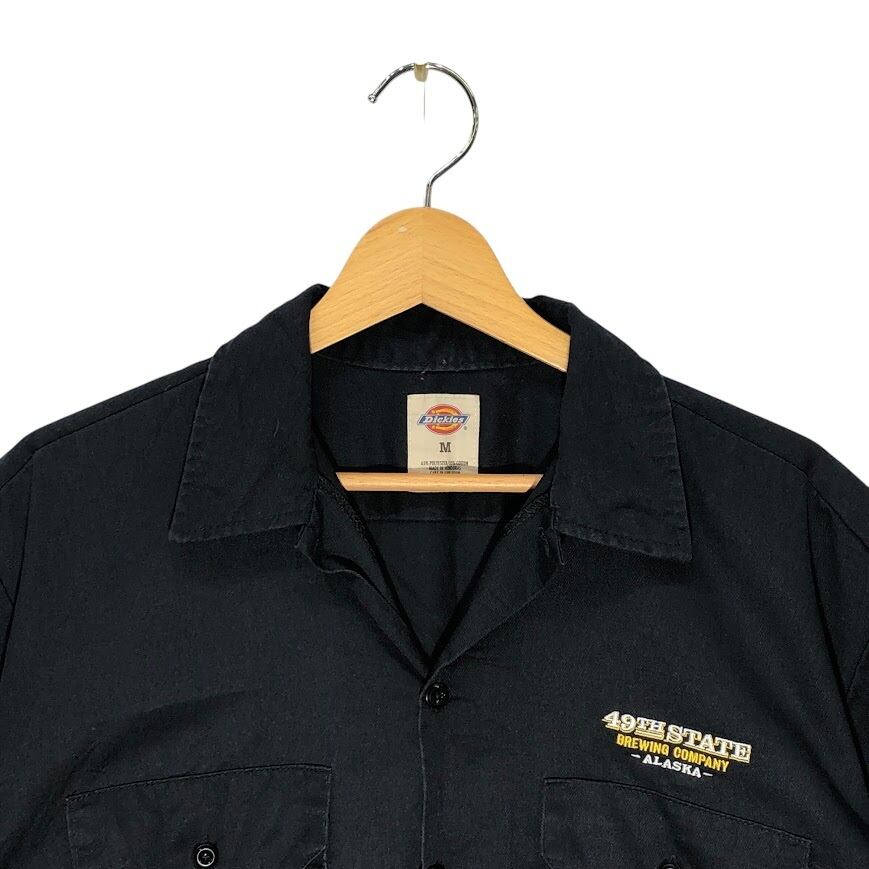 ヴィンテージ Dickies ディッキーズ ワークシャツ 49TH STATE BREWING COMPANY -ALASKA- アラスカ 半袖 シャツ ボタンダウン 企業ロゴ刺繡 オーバーサイズ ビッグシルエット Honduras製 Mサイズ ブラック
