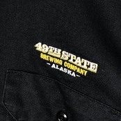 商品名:ヴィンテージ Dickies ディッキーズ ワークシャツ 49TH STATE BREWING COMPANY -ALASKA- アラスカ 半袖 シャツ ボタンダウン 企業ロゴ刺繡 オーバーサイズ ビッグシルエット Honduras製 Mサイズ ブラック