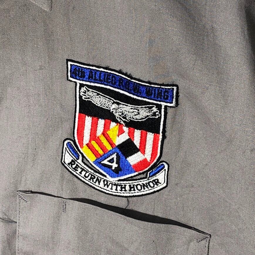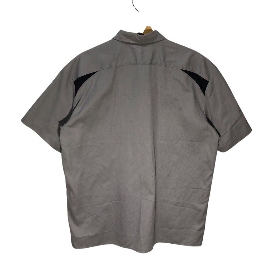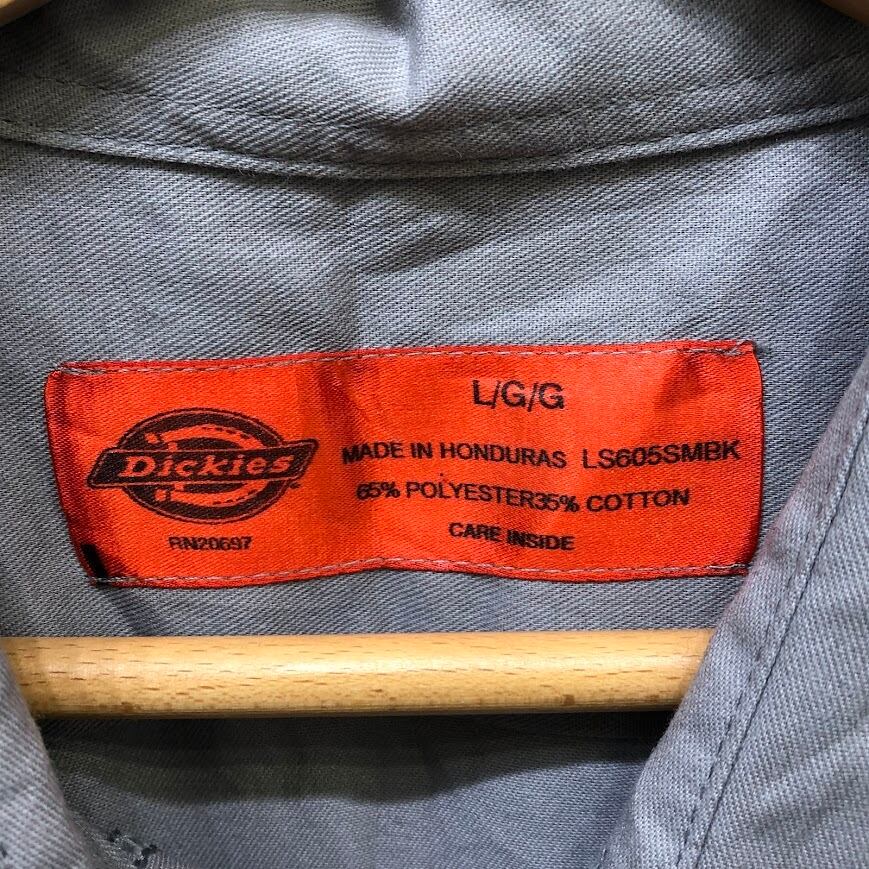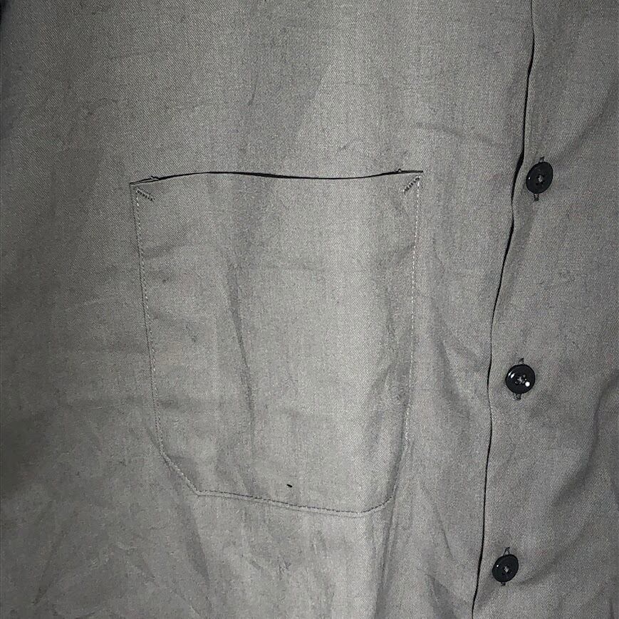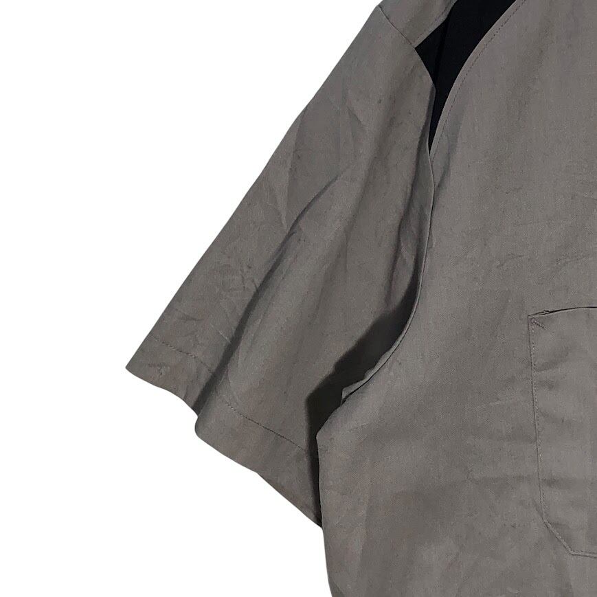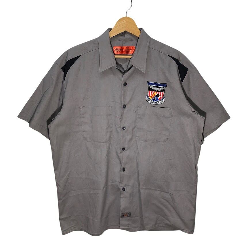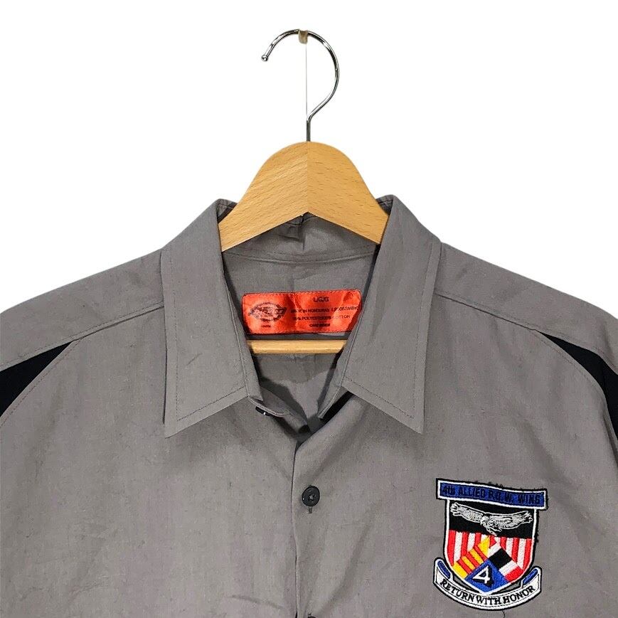 Dickies ディッキーズ ワークシャツ アメリカ軍捕虜組織 「第4連合捕虜ウィング」 エンブレム刺繍 半袖シャツ ボタンダウン 企業ロゴ刺繍 オーバーサイズ ビッグシルエット HONDURAS製 Lサイズ グレー