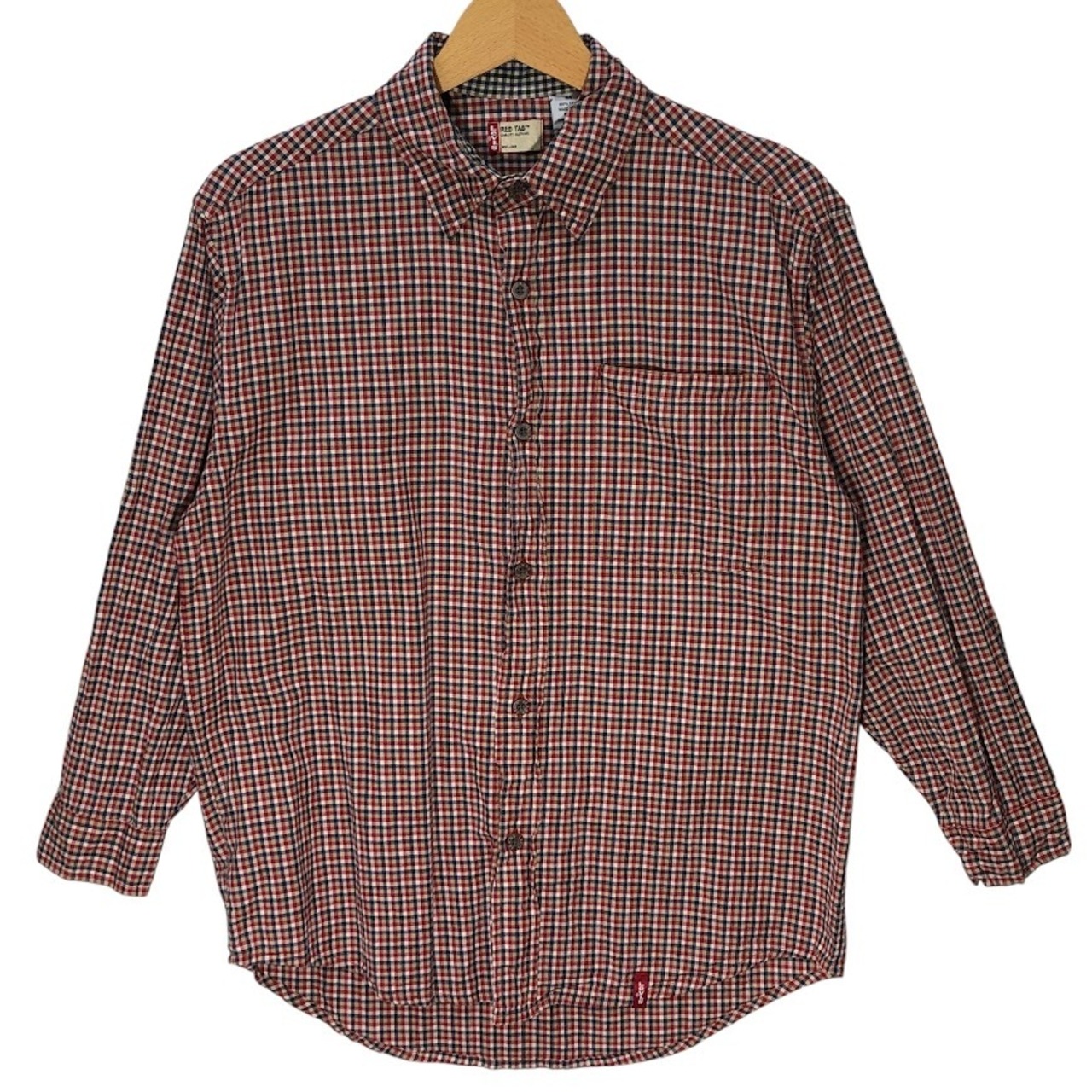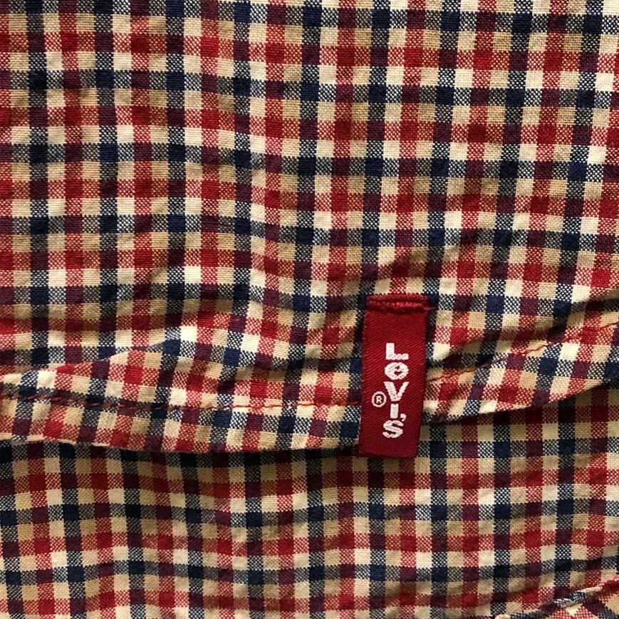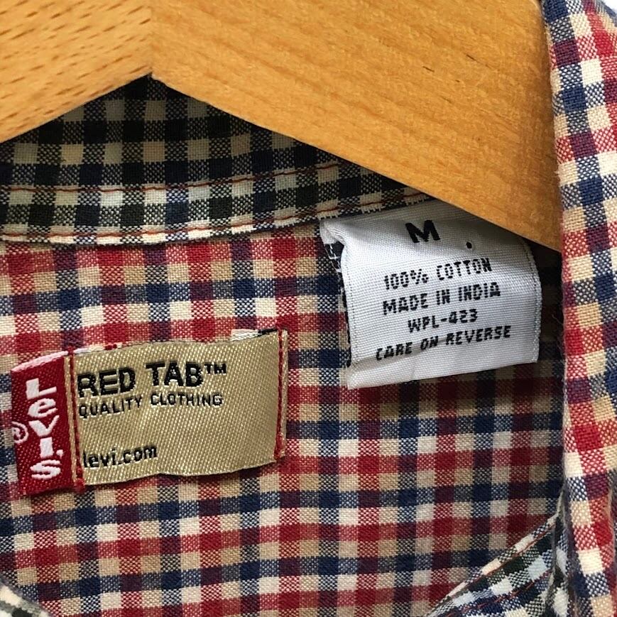 商品名:Levi's RED TAB リーバイスレッド チェック柄 チェックシャツ 7分袖 長袖シャツ ボタンダウン INDIA製 Mサイズ レッド