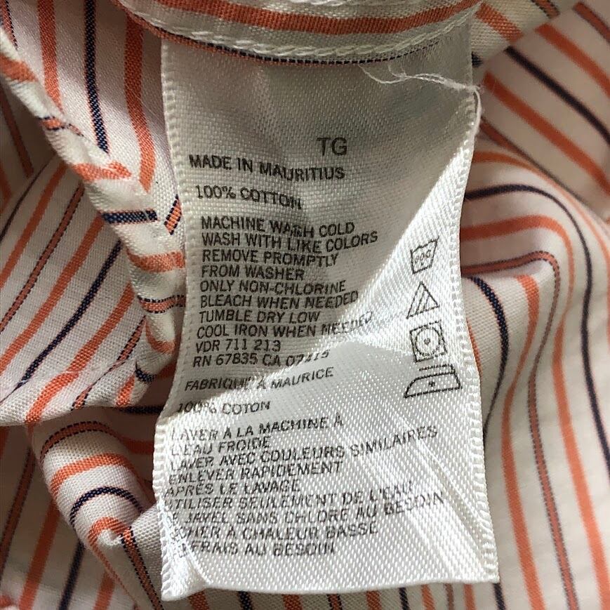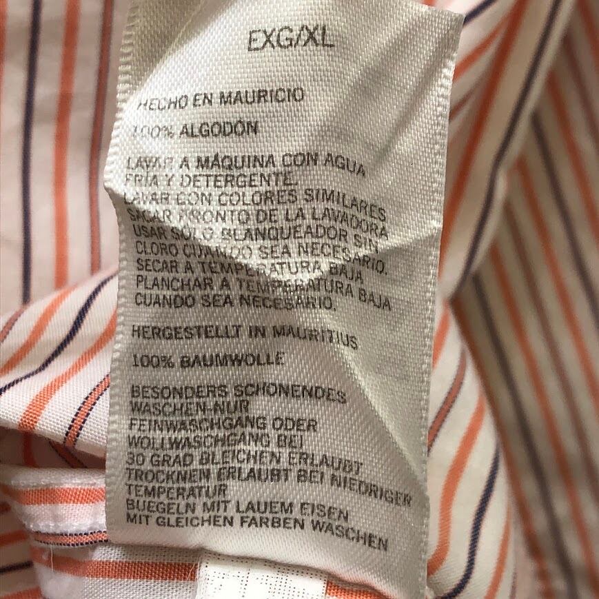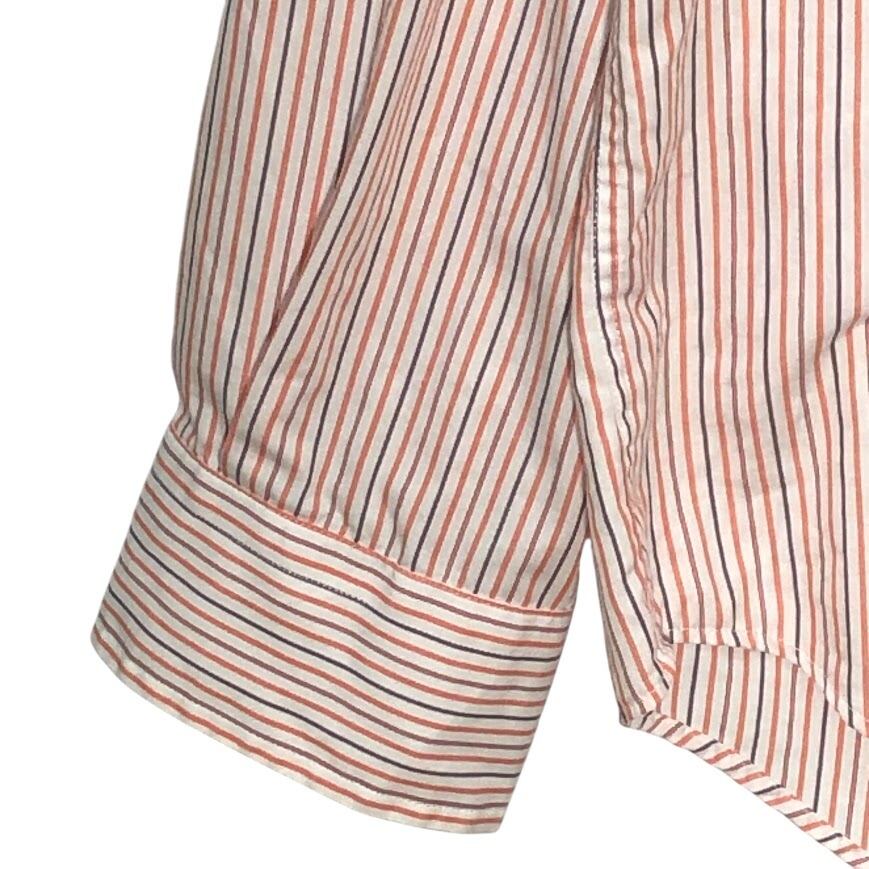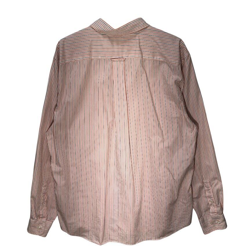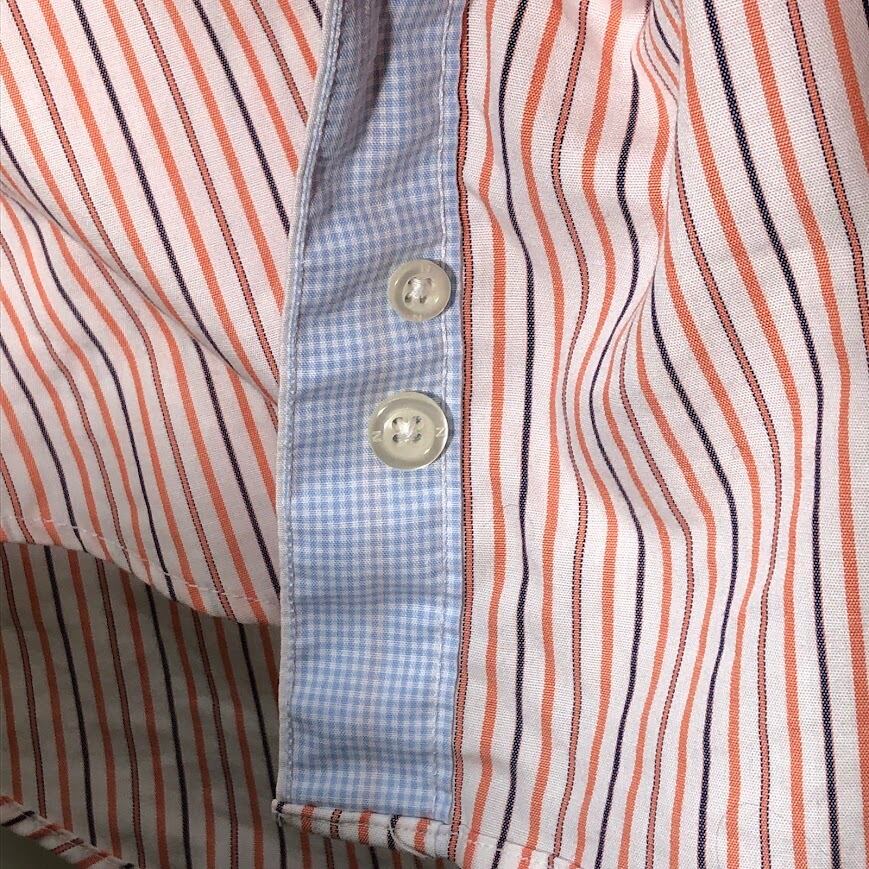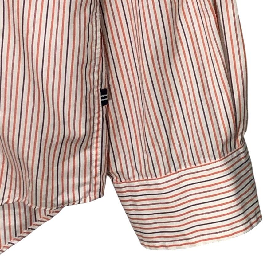 商品名:NAUTICA /ノーティカ A BIT TRIMMER 胸ポケット ストライプ柄 長袖シャツ ワンポイントロゴ刺繡 MAURITIUS製 XLサイズ オレンジ/ホワイト