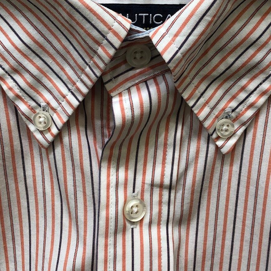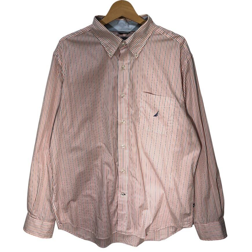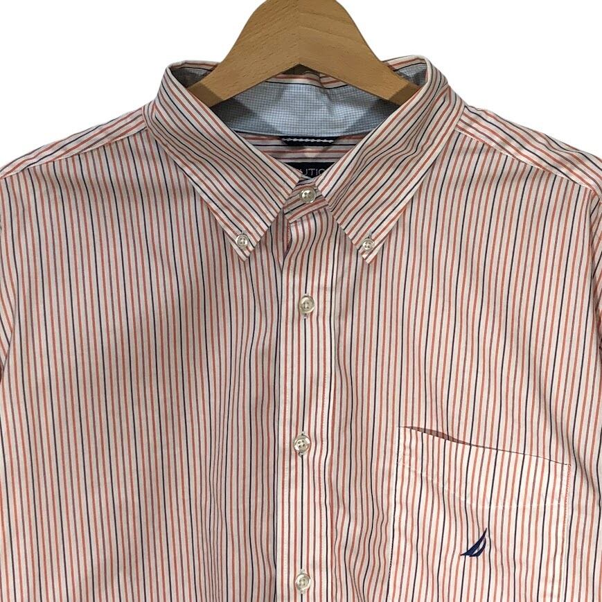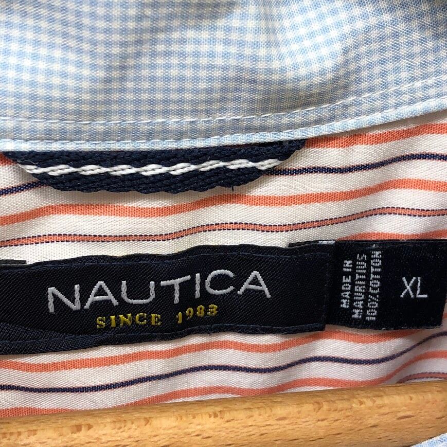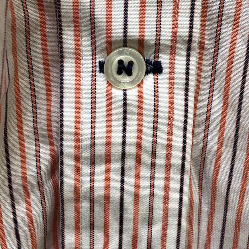 NAUTICA /ノーティカ A BIT TRIMMER 胸ポケット ストライプ柄 長袖シャツ ワンポイントロゴ刺繡 MAURITIUS製 XLサイズ オレンジ/ホワイト