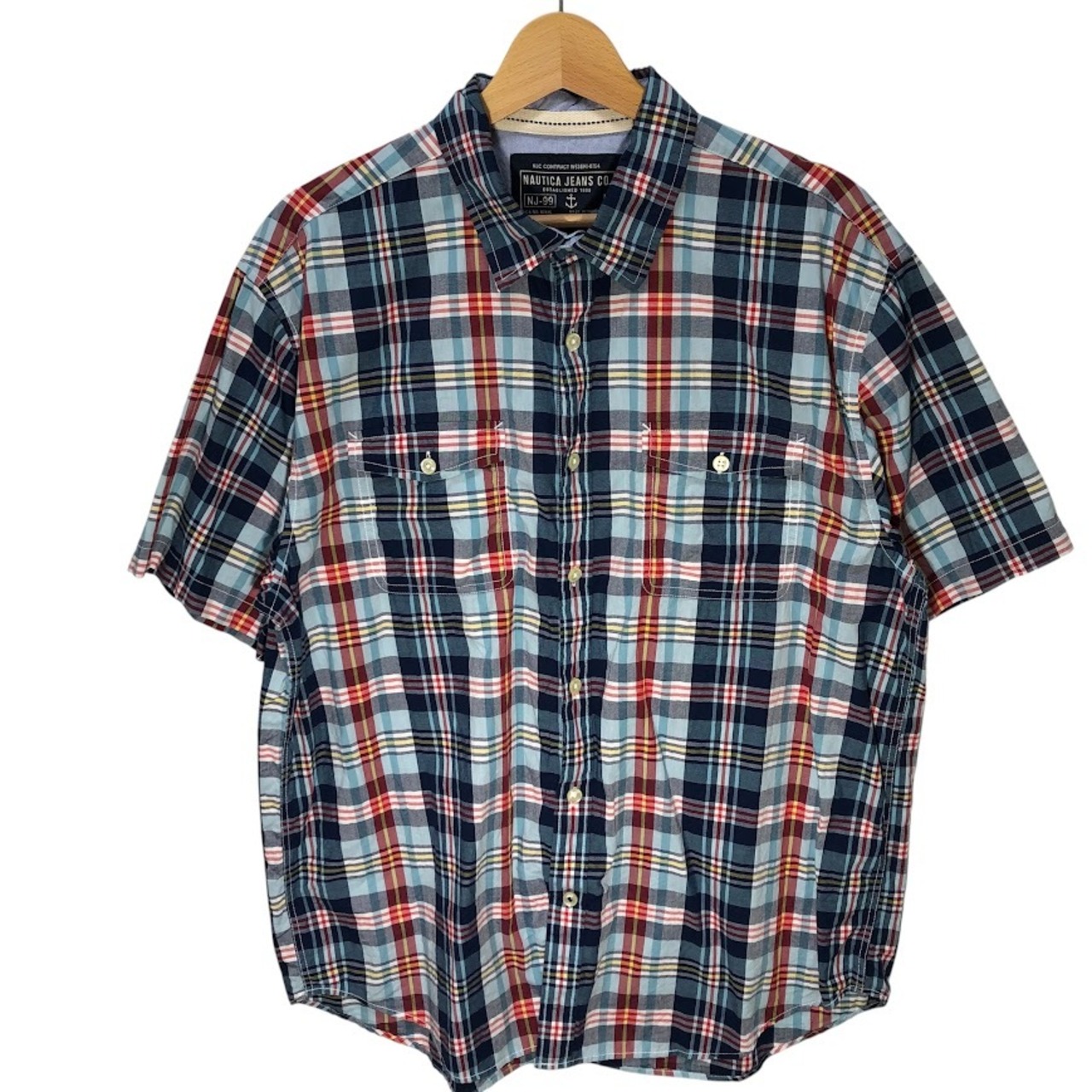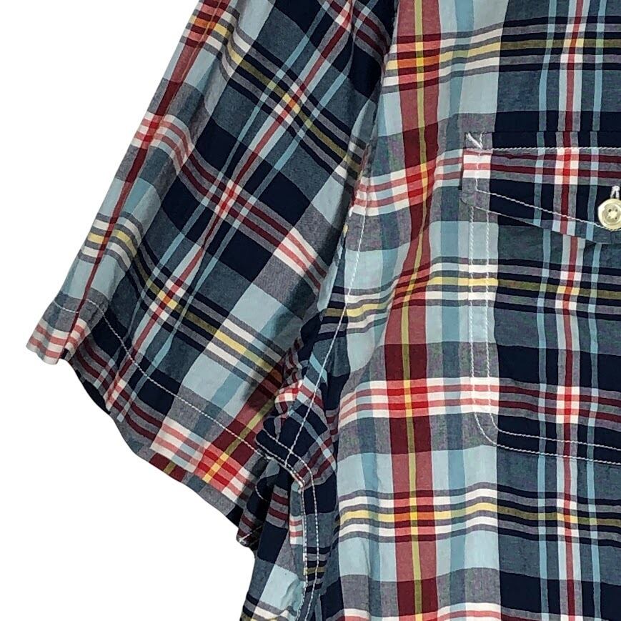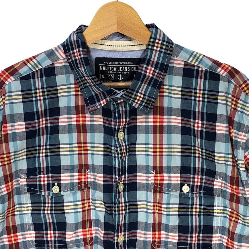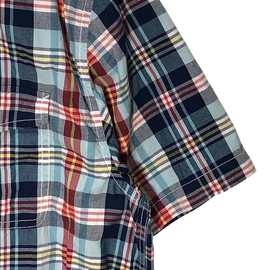 商品名:NAUTICA JEANS/ノーティカジーンズ チェック柄 ダブルポケット 半袖シャツ チェックシャツ ボタンダウン オーバーサイズ INDNESIA製 Lサイズ マルチカラー