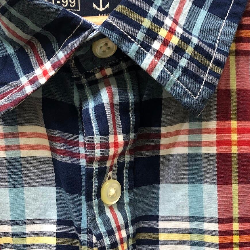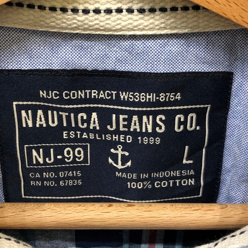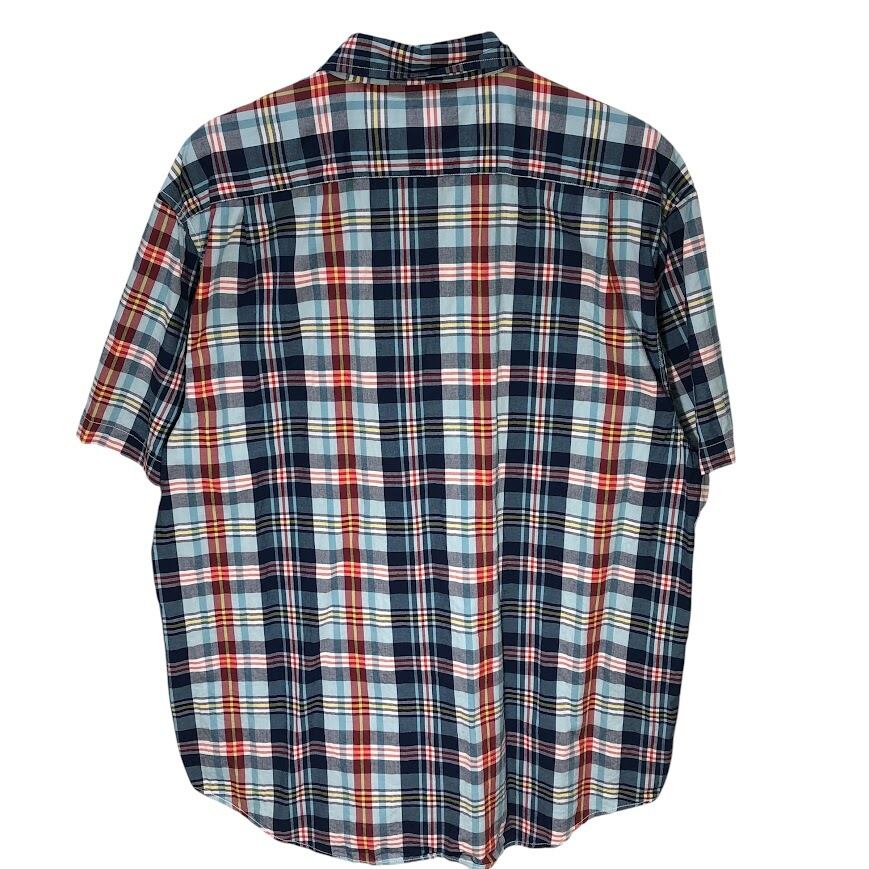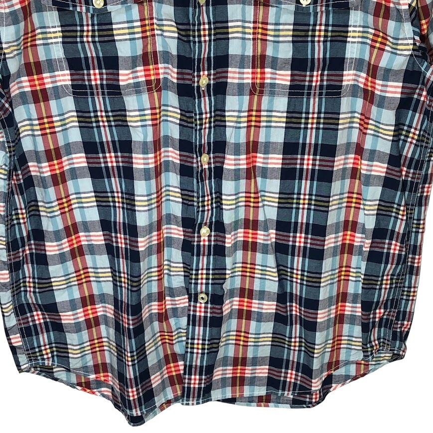 商品名:NAUTICA JEANS/ノーティカジーンズ チェック柄 ダブルポケット 半袖シャツ チェックシャツ ボタンダウン オーバーサイズ INDNESIA製 Lサイズ マルチカラー