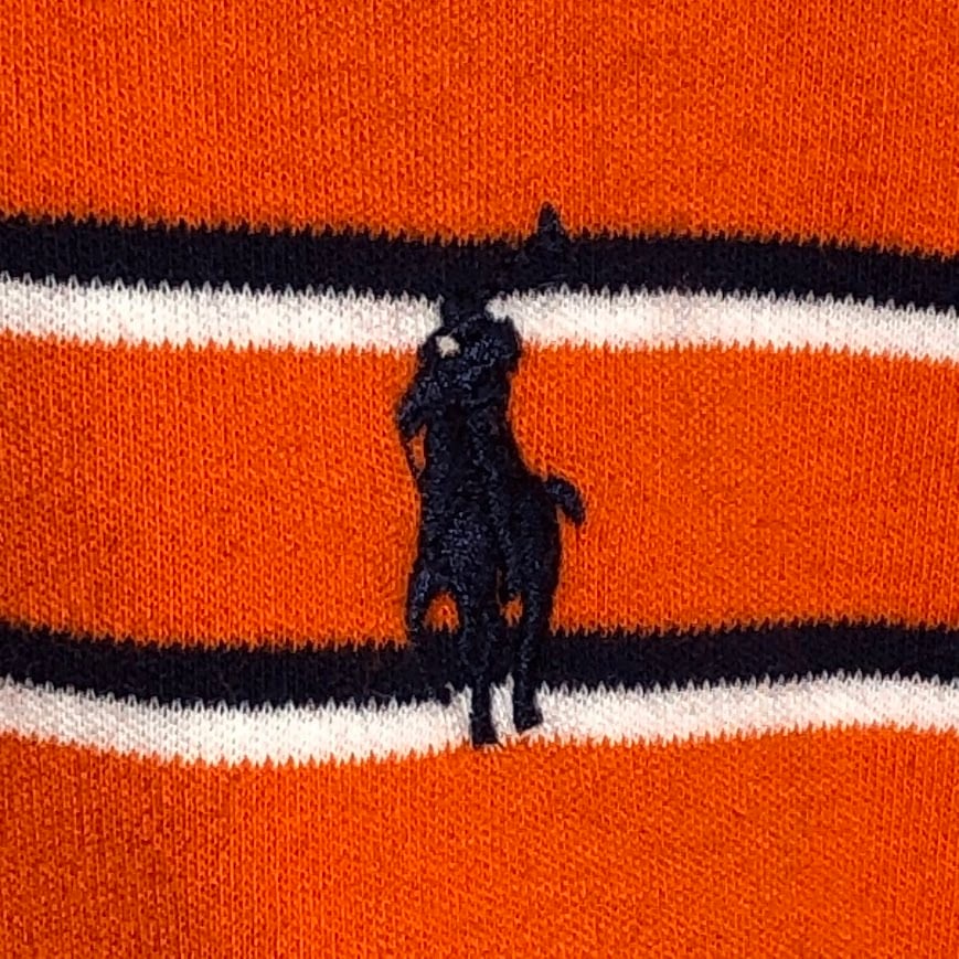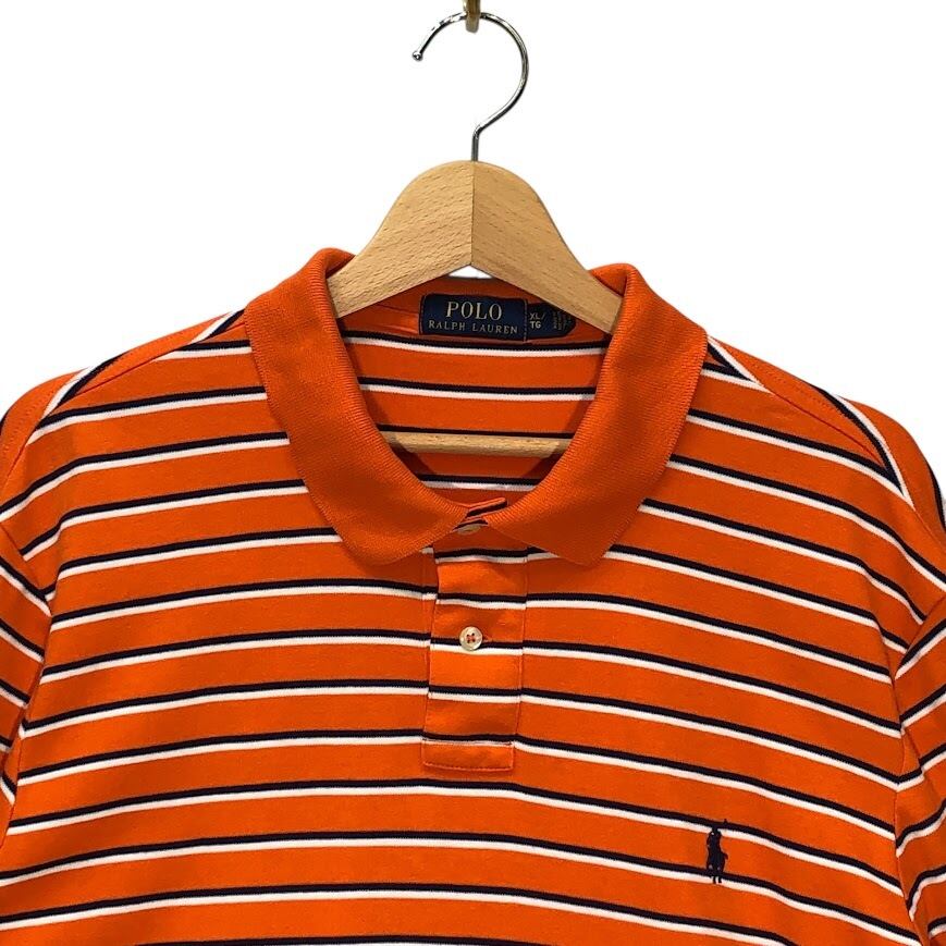 POLO RALPH LAUREN ポロラルフローレン 半袖 ポロシャツ ポニー刺繡 ボーダー柄 ワンポイント刺繡 Vietnam製 XL/TGサイズ オレンジ