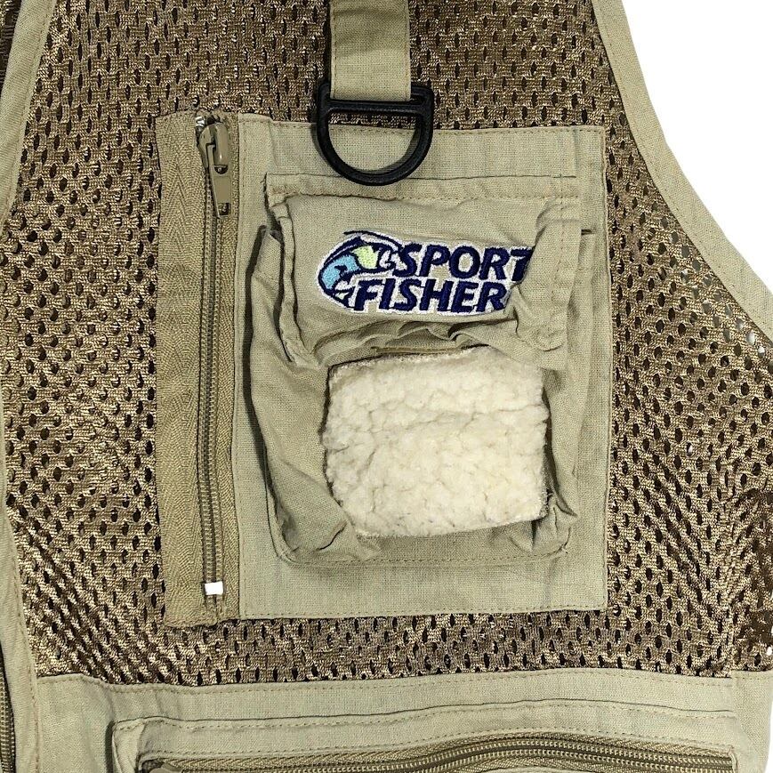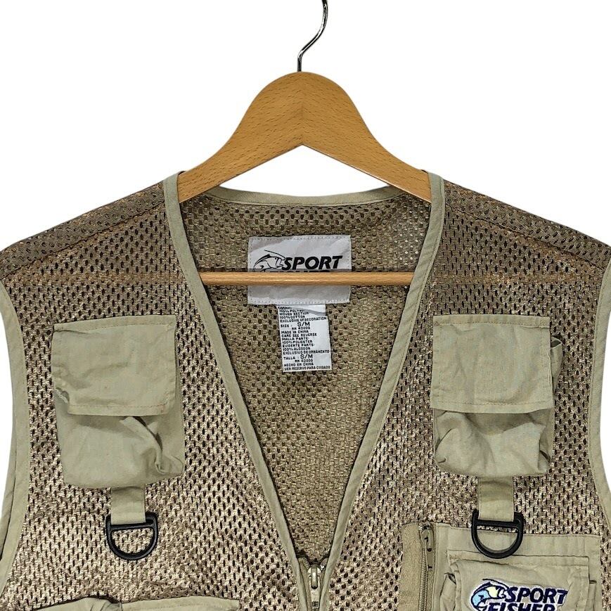 SPORT FISHER スポーツフィッシャー フィッシングベスト ハンティング メッシュ ワンポイント刺繡 China製 S/Mサイズ カーキ ベージュ