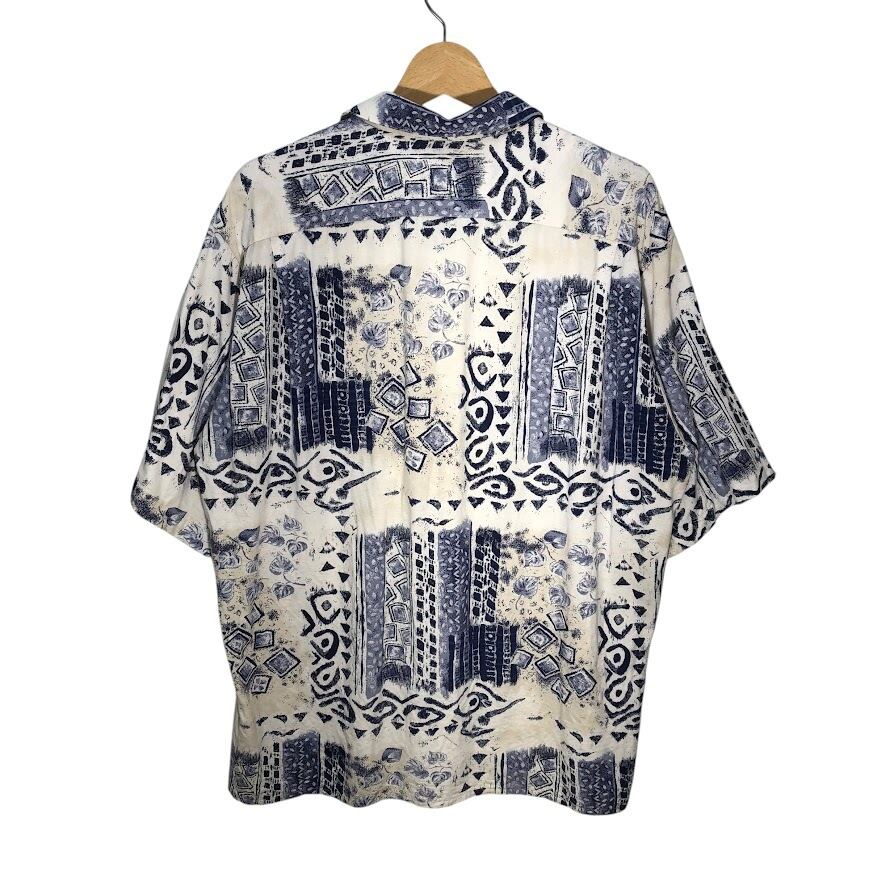 商品名:Claude Rayland アロハシャツ 総柄 半袖 シャツ オーバーサイズ ビッグシルエット 4サイズ ホワイト ブルー