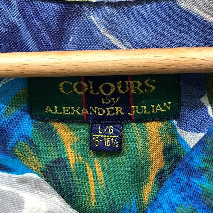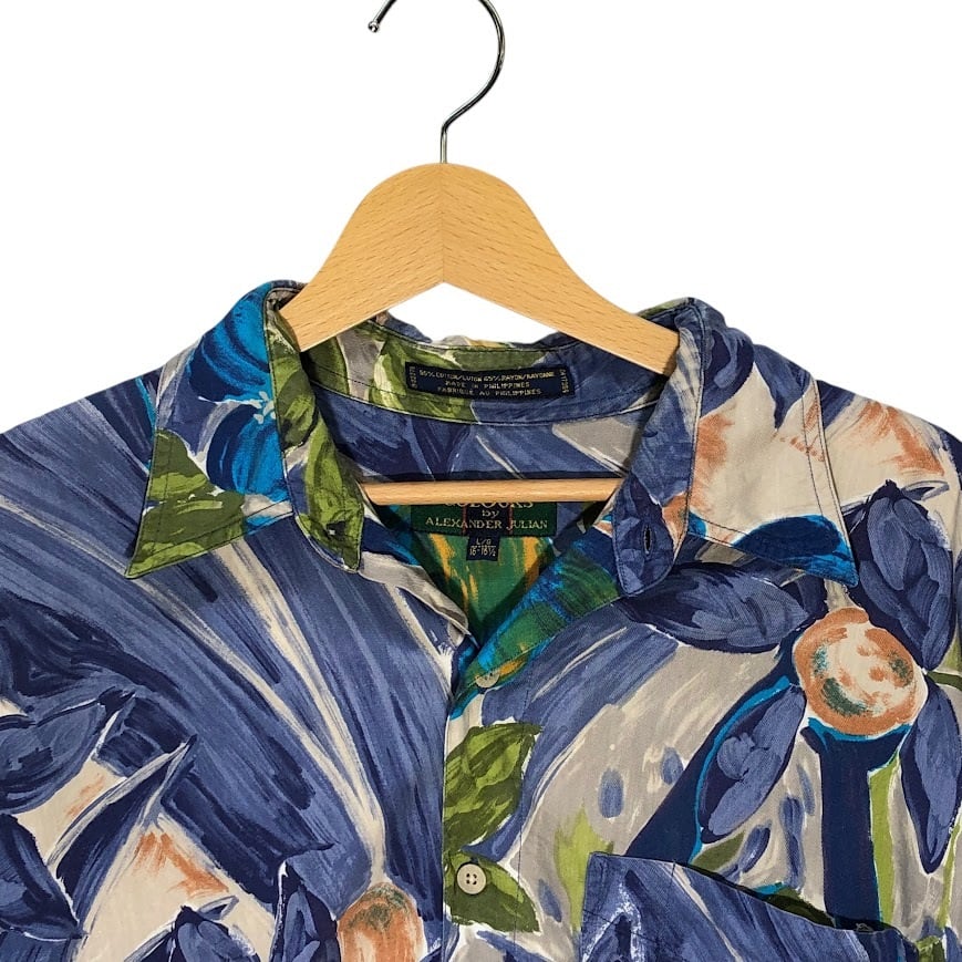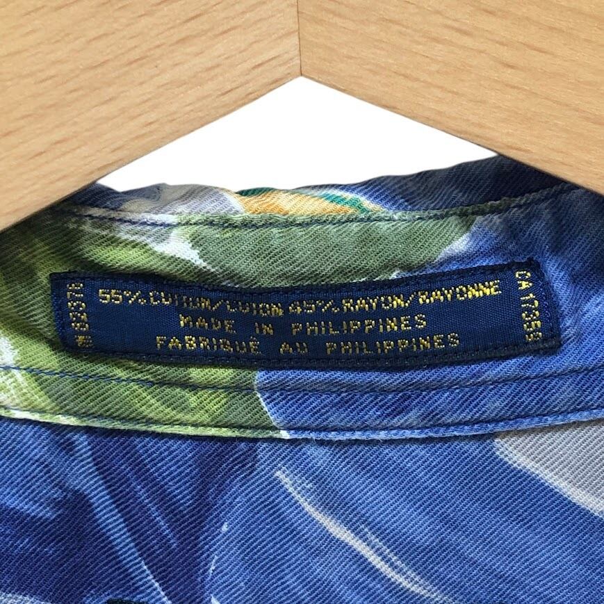 COLOURS アロハシャツ レーヨンシャツ 総柄 半袖 シャツ オーバーサイズ ビッグシルエット フィリピン製 L/Gサイズ ブルー