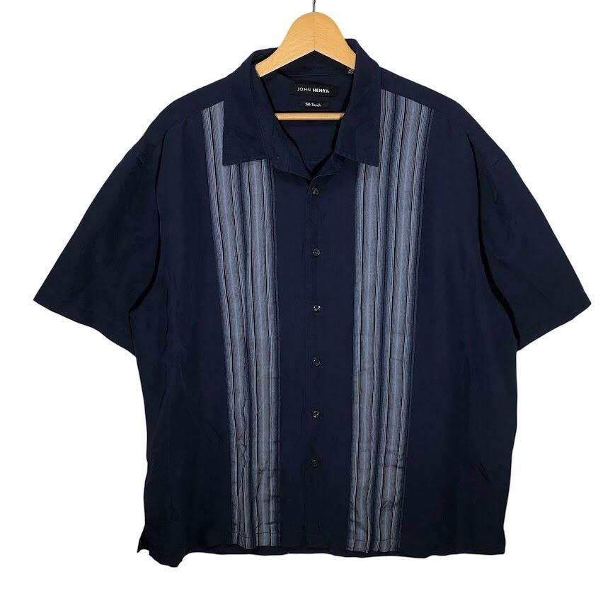 JOHN HENRY Silk Touch レーヨンシャツ 半袖 シャツ ボタンダウン オーバーサイズ ビッグシルエット CHINA製 XXLサイズ ネイビー