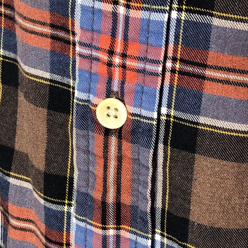 商品名:00~'s vintage 00~年代 ヴィンテージ TOMMY HILFIGER SLIM FIT トミーヒルフィガー 胸ポケット 長袖 シャツ ボタンダウン オーバーサイズ ビックシルエット Bangladesh製 XLサイズ ブラウン オレンジ ブルー