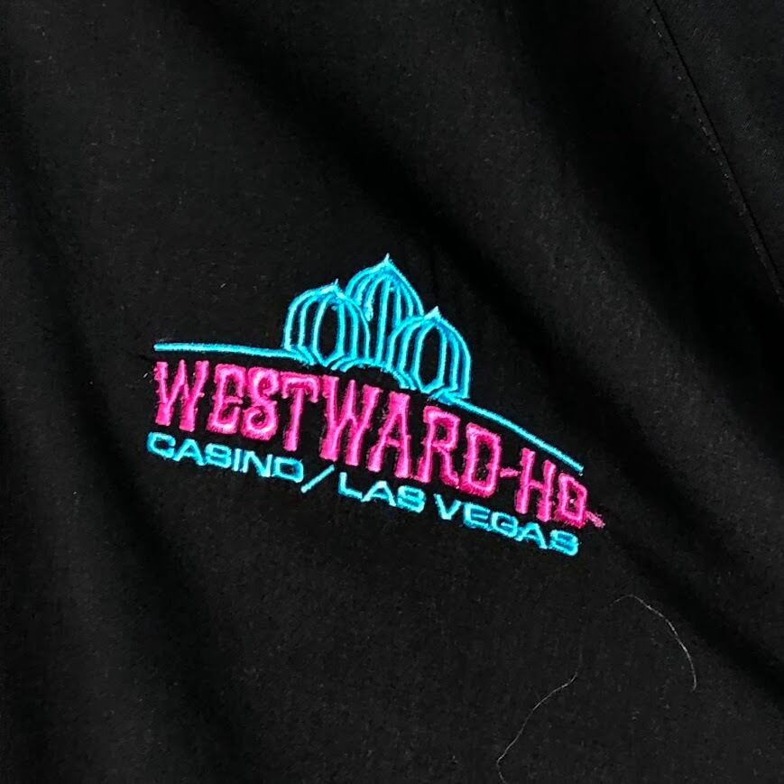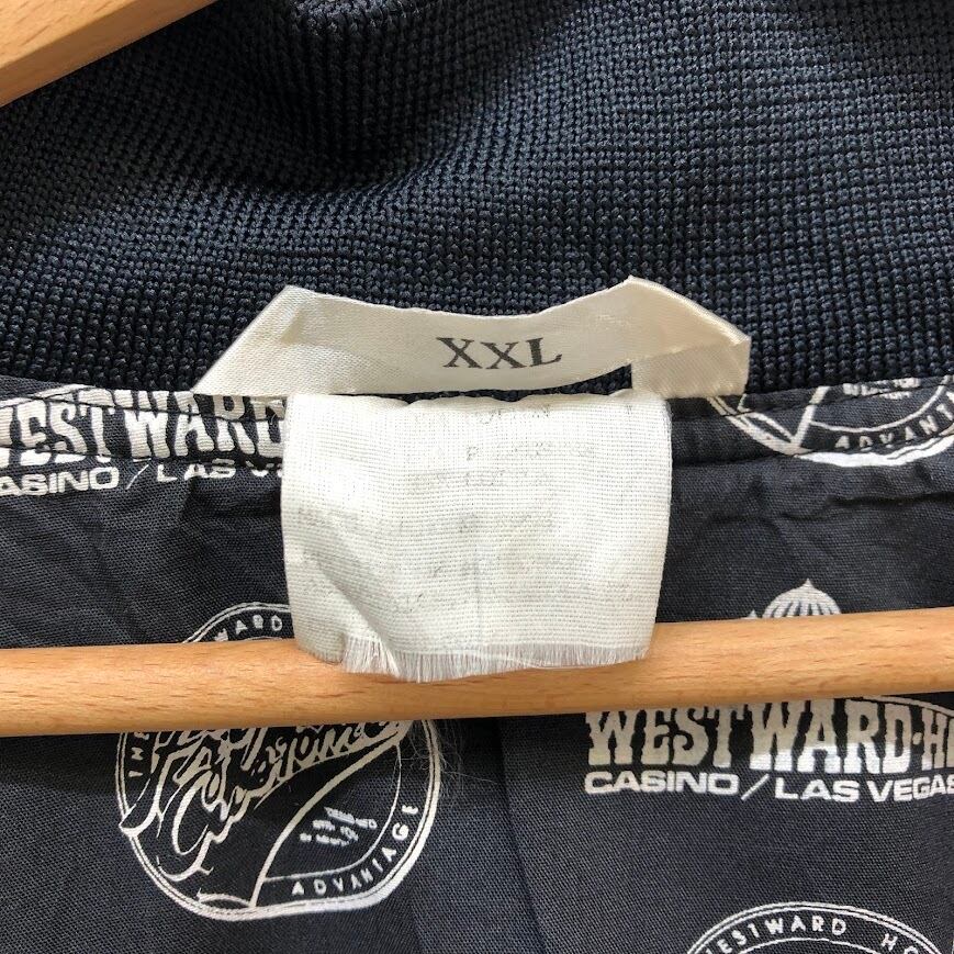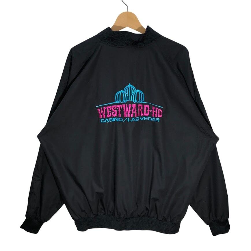ヴィンテージ WESTWARD CASINO スタジャン LASVEGAS ブルゾン ナイロンジャケット ライナー総柄 ライトアウター バック刺繍 企業ロゴ刺繍 オーバーサイズ ビッグシルエット XXLサイズ ブラック