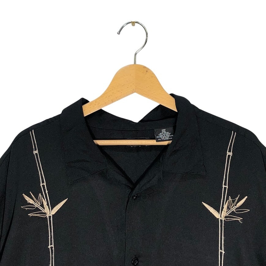 商品名:GEORGE メキシカンシャツ キューバ 総柄 US古着 バンブー刺繍 レーヨンシャツ 半袖 シャツ ボタンダウン オーバーサイズ ビッグシルエット CHINA製 2XLサイズ ブラック