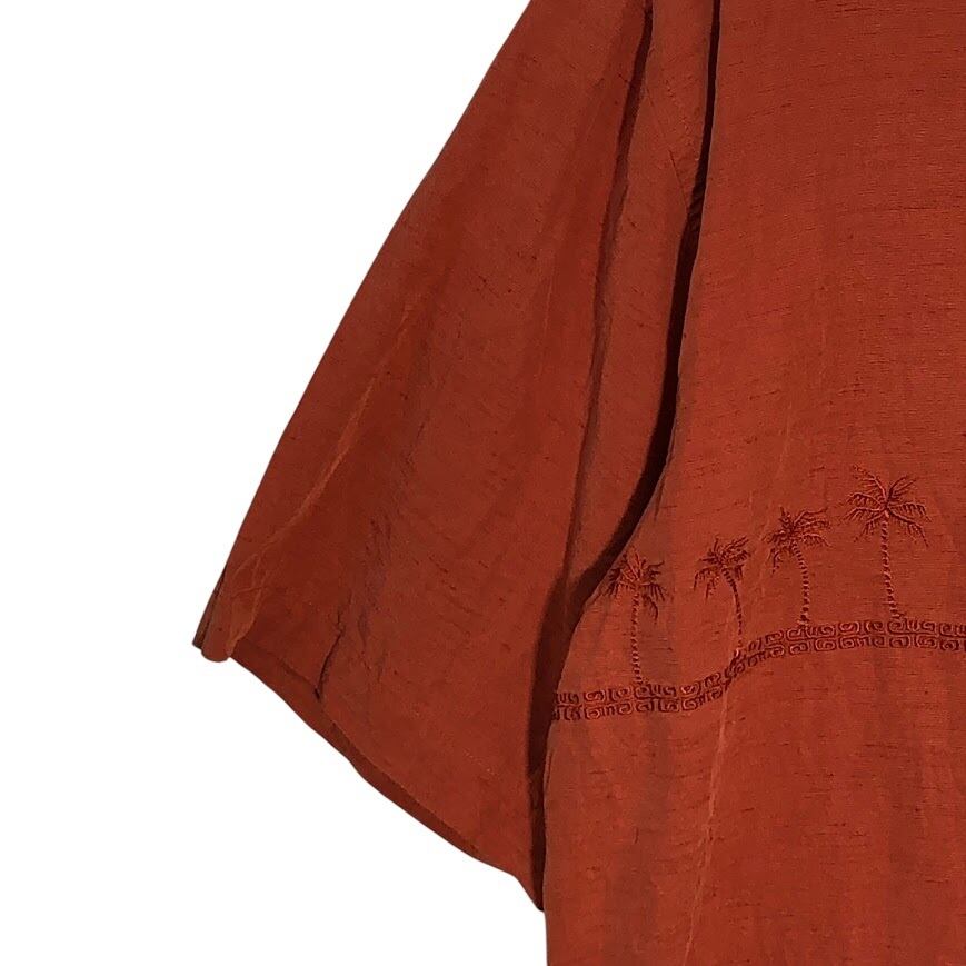 商品名:Quiksilver クイックシルバー アロハシャツ 総柄 US古着 ヤシの木刺繍 半袖 シャツ ボタンダウン オーバーサイズ インドネシア製 XLサイズ レッド オレンジ