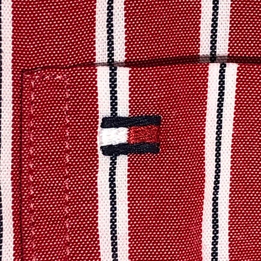 00's vintage 00年代ヴィンテージ TOMMY HILFIGER トミーヒルフィガー ストライプシャツ ボタンダウンシャツ Taiwan製 Mサイズ サーモンピンク ホワイト